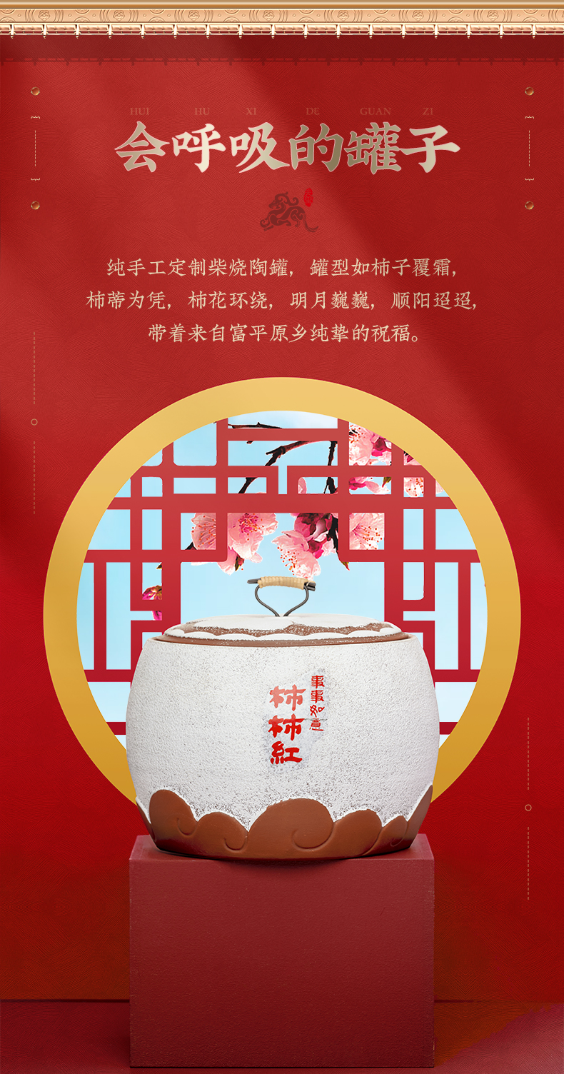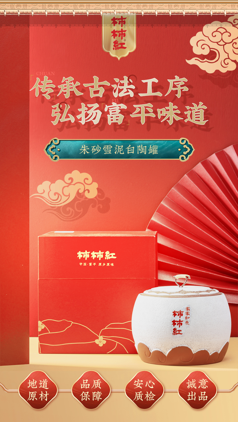 柿柿红 富平特级霜降吊柿饼 朱砂雪泥陶罐高端礼盒 1000g/盒