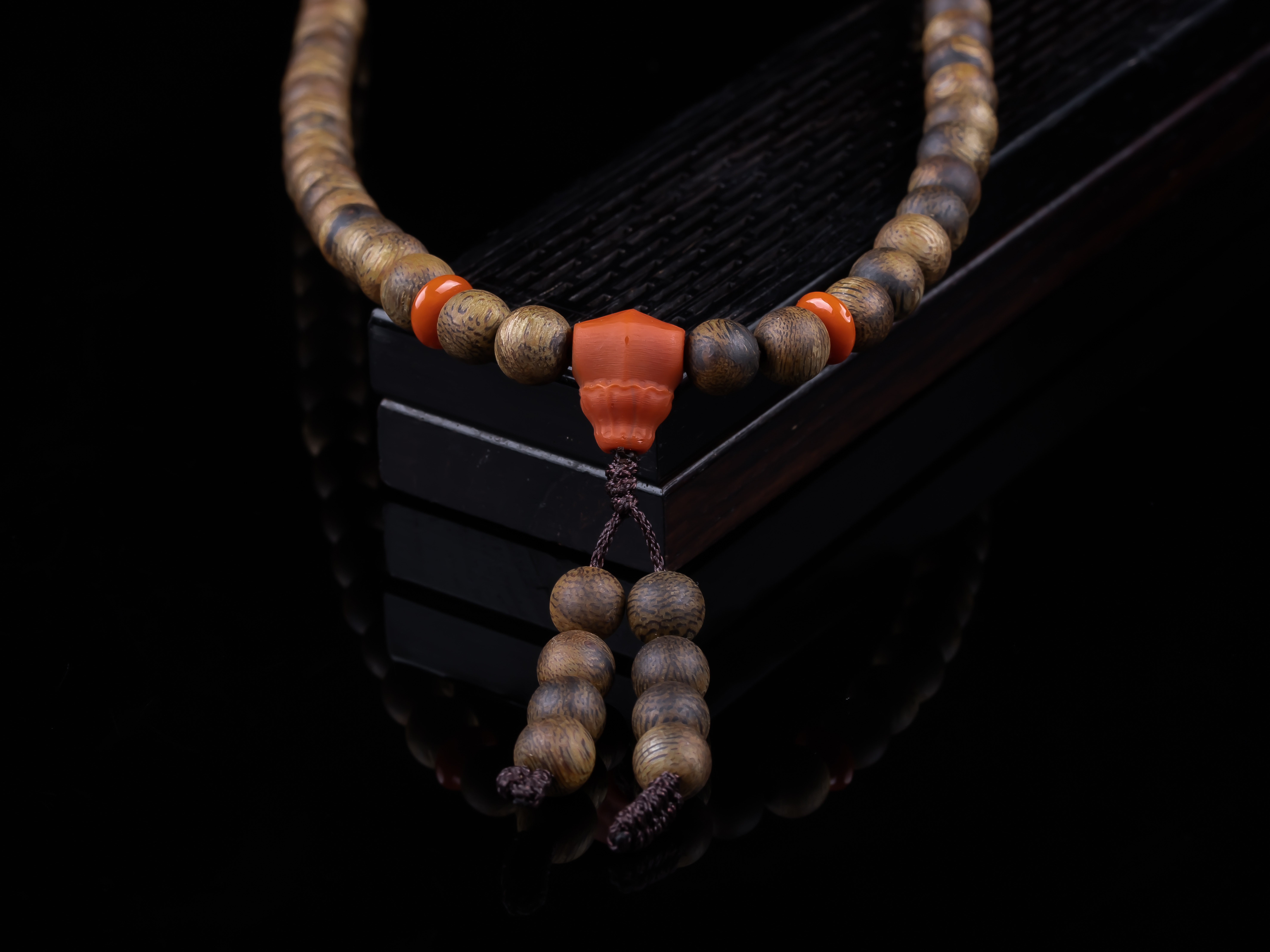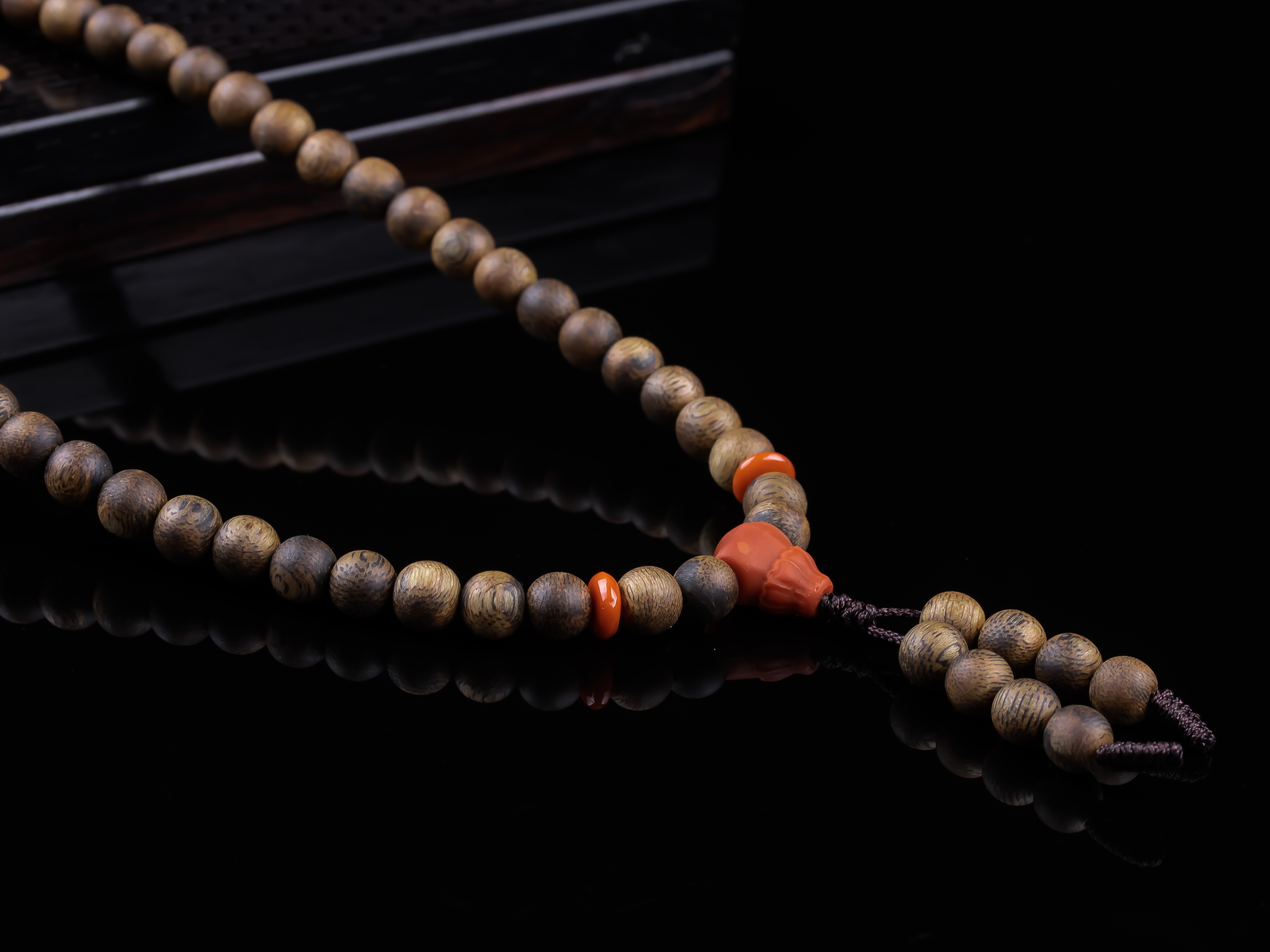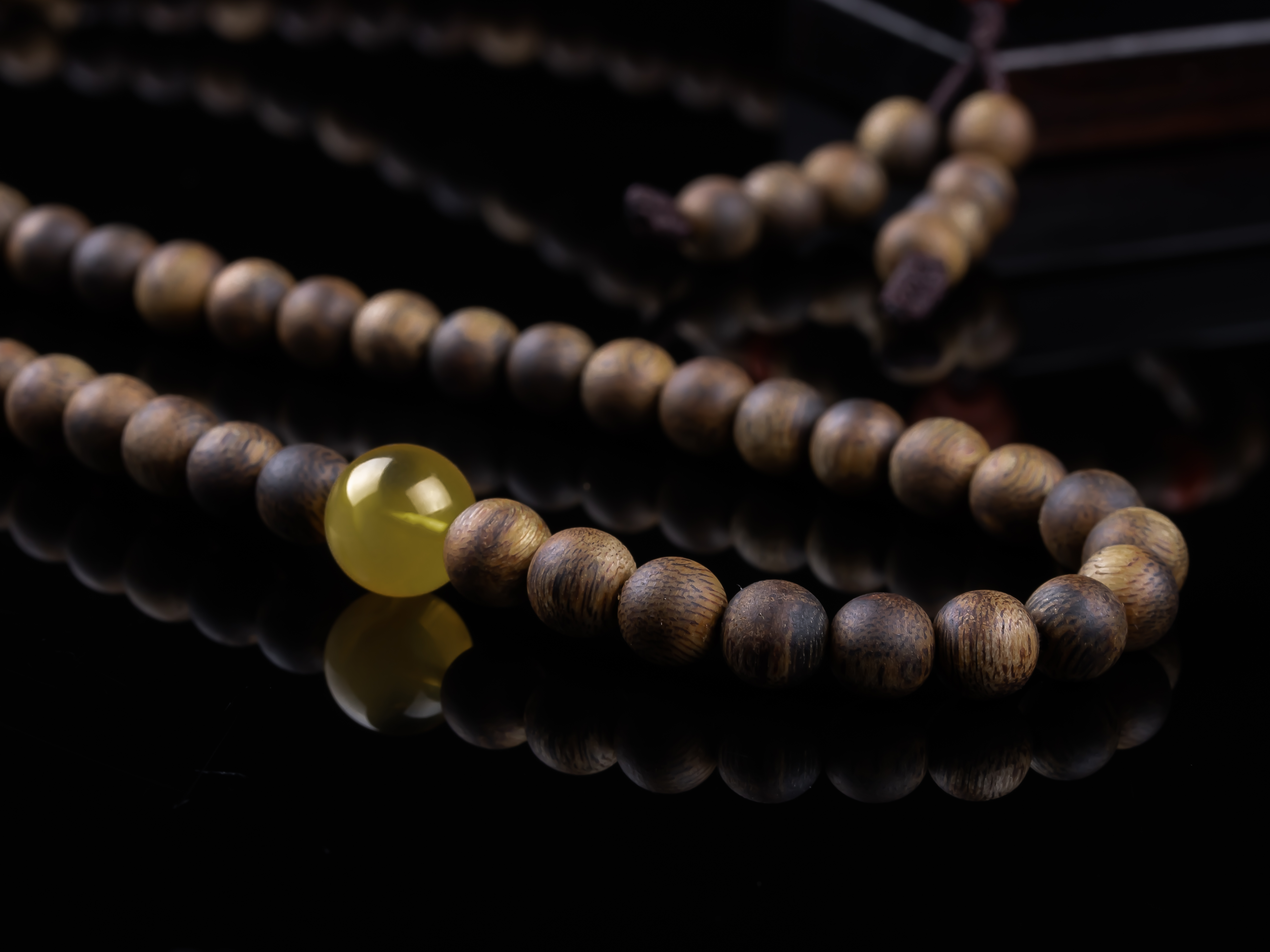 XY0300沉香+翡翠南红蜜蜡双圈,天然沉香约7.3mm。原色原味,香味自然清甜,搭翡翠、蜜蜡、南红三通,款式素雅大方,简约有韵味。