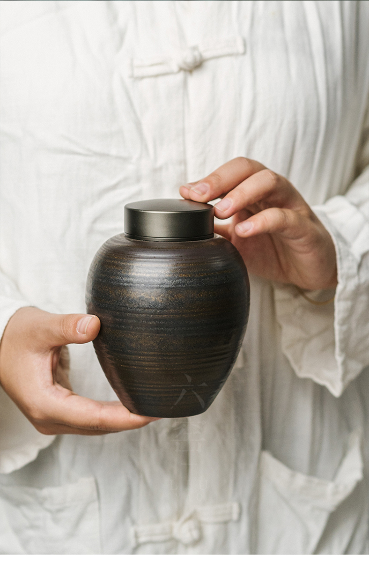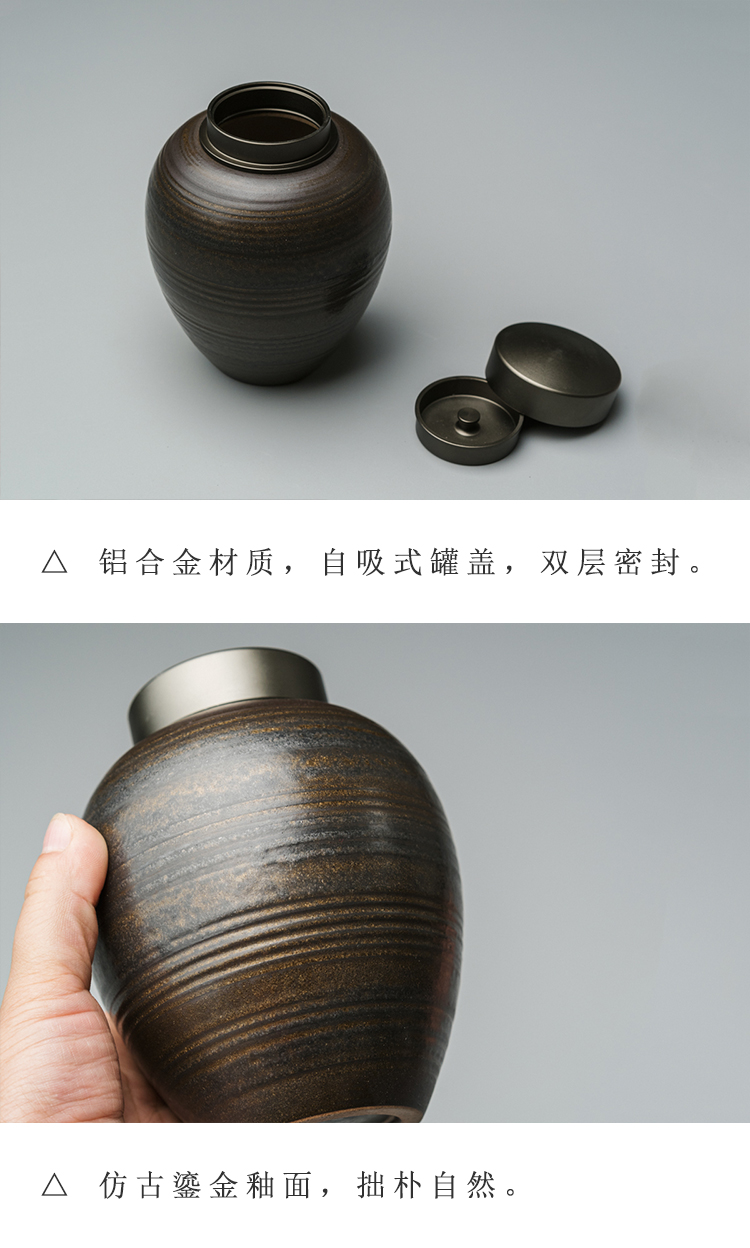 永利汇鎏金釉茶叶罐密封罐大号家用防潮茶仓铝合金盖存茶罐陶瓷