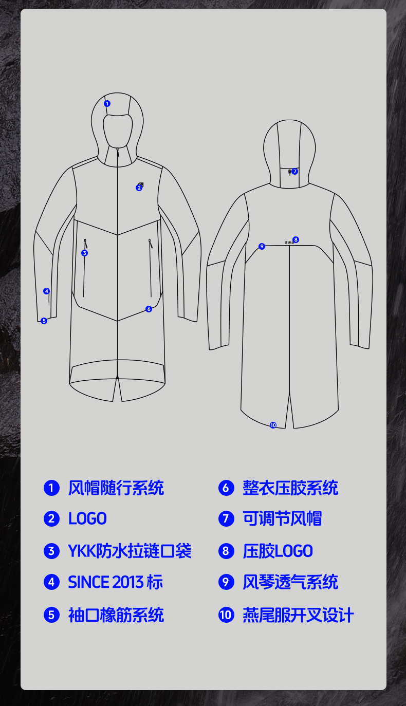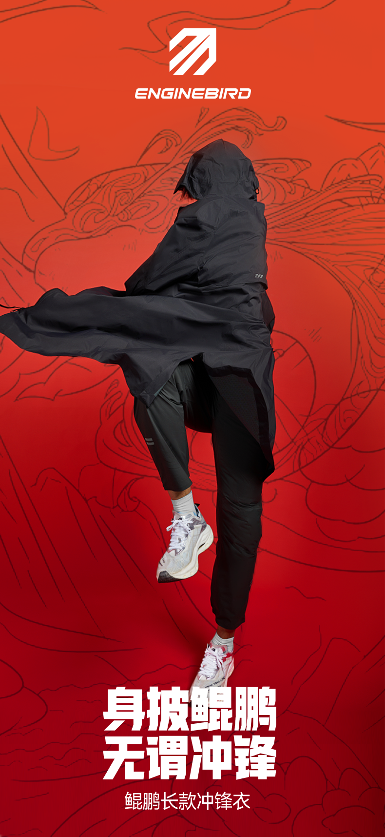 引擎鸟鲲鹏长款冲锋衣户外徒步商务外套
