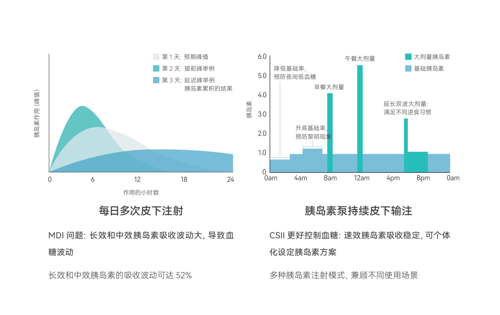 联影智融自研 uTouchpump® 胰岛素泵,以持续皮下输注(CSII) 的方式进行长效管理,加持控糖先进科技 , 对比传统每日多次 皮下注射(MDI)模式更加安全、精准、便捷,帮助糖友更好地面 对生活,在与疾病自处中自洽,与生活共处时自在,与社会互融 时更加自信。