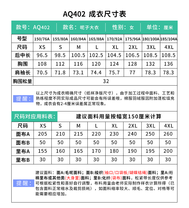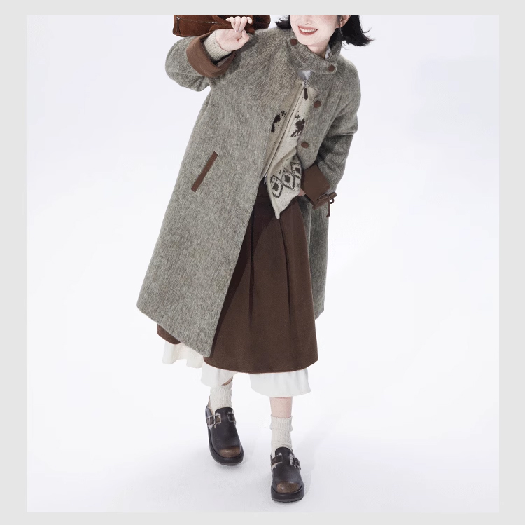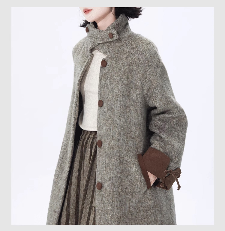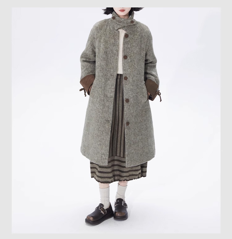 裁缝学苑AQ402高级感立领夹棉毛呢大衣女秋冬中长款加厚复古呢子外套