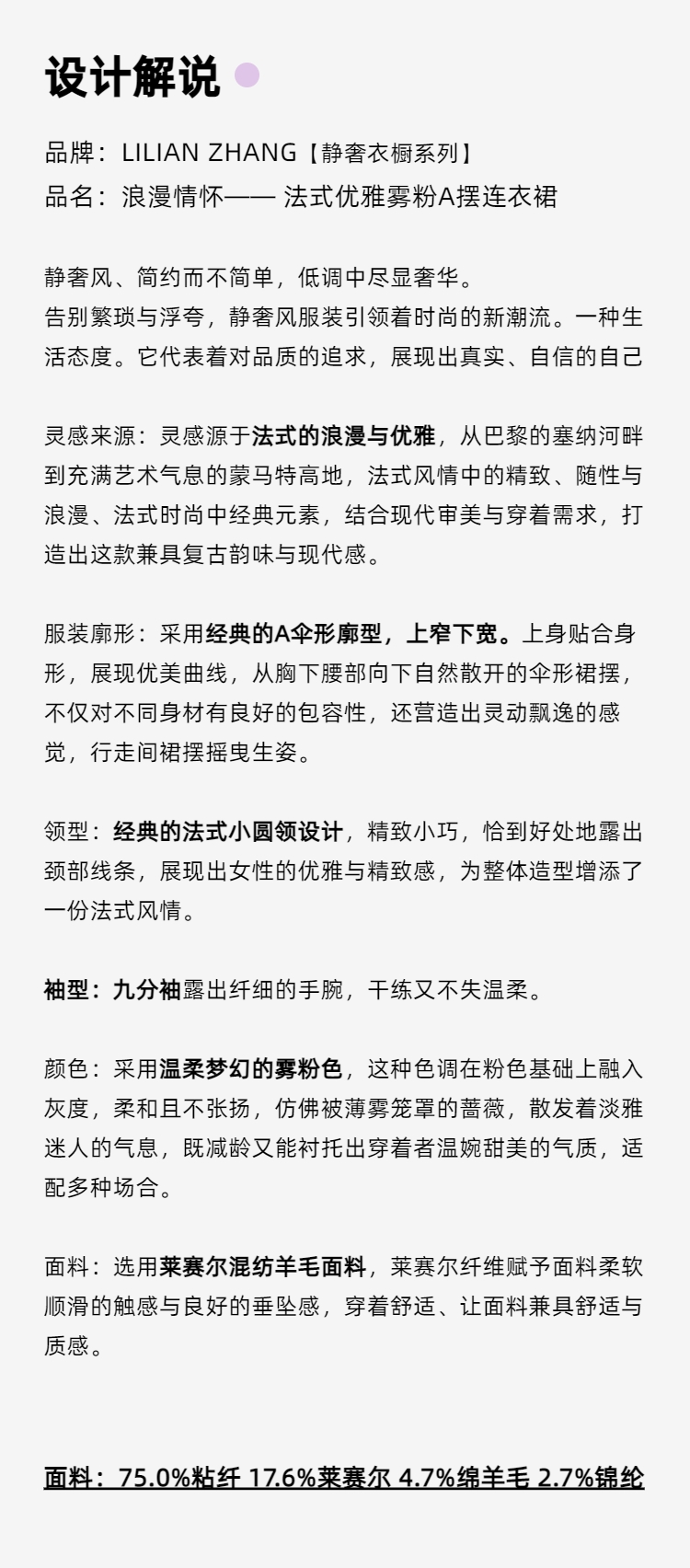 E“定制”——静奢风———浪漫情怀—— 法式优雅雾粉A摆连衣裙 2501079