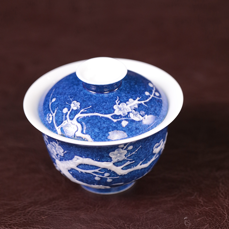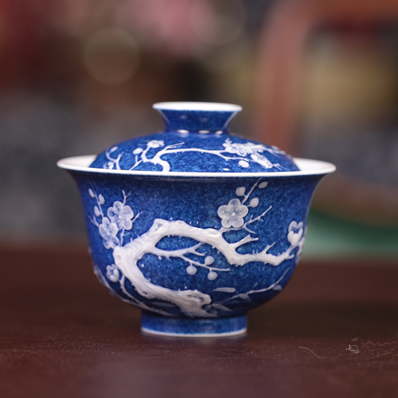初蓝舍洒蓝梅花盖碗