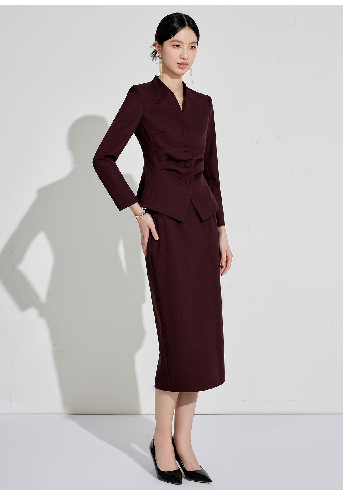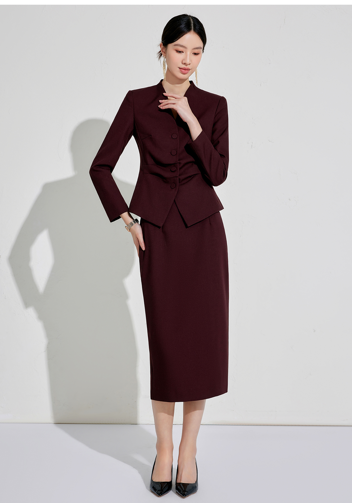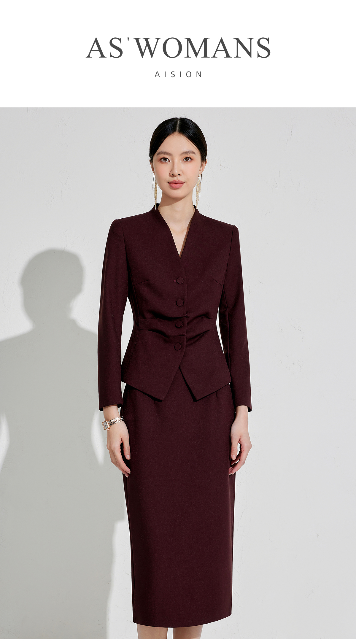 正式场合设计感主持人安可拉红单排扣