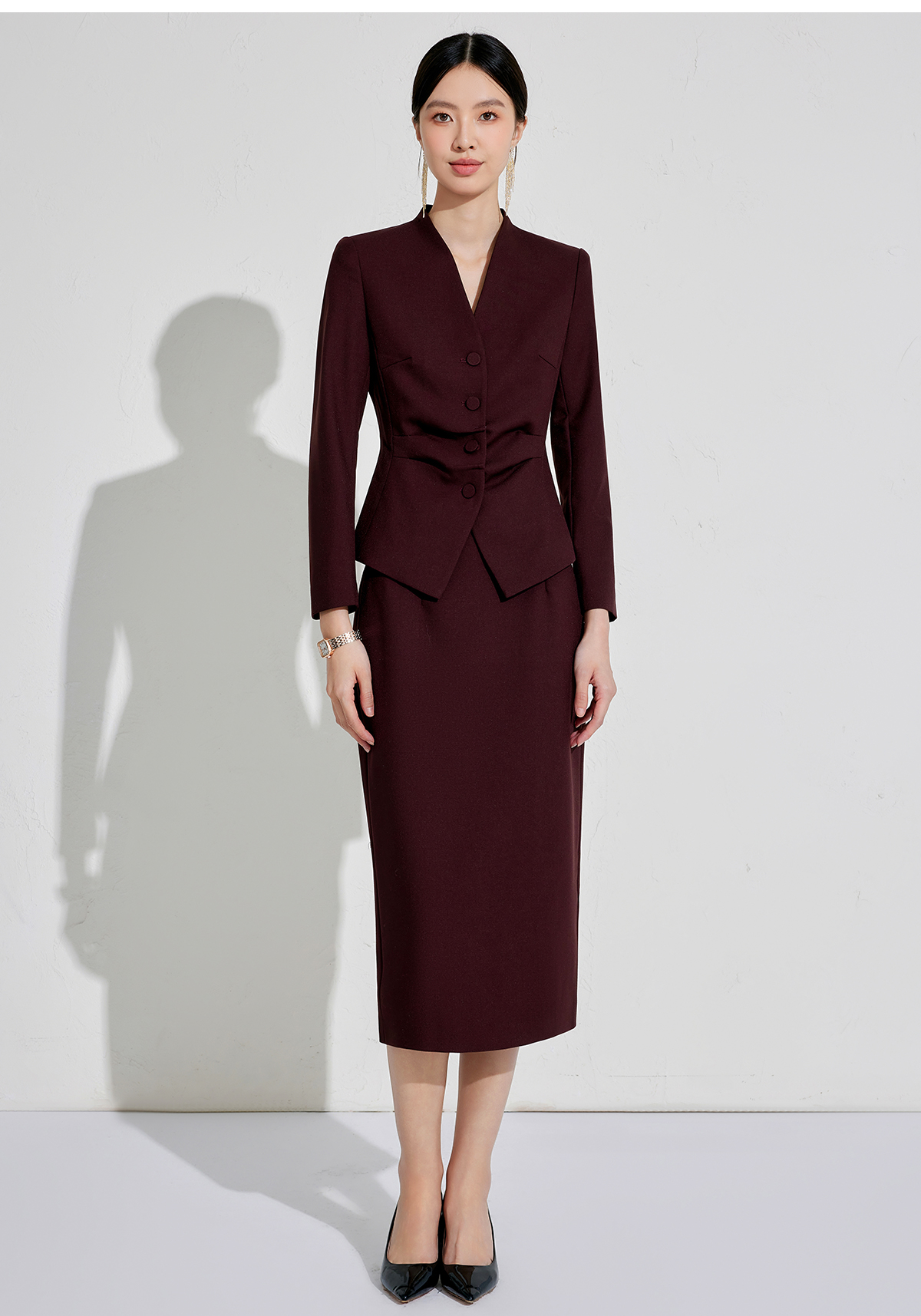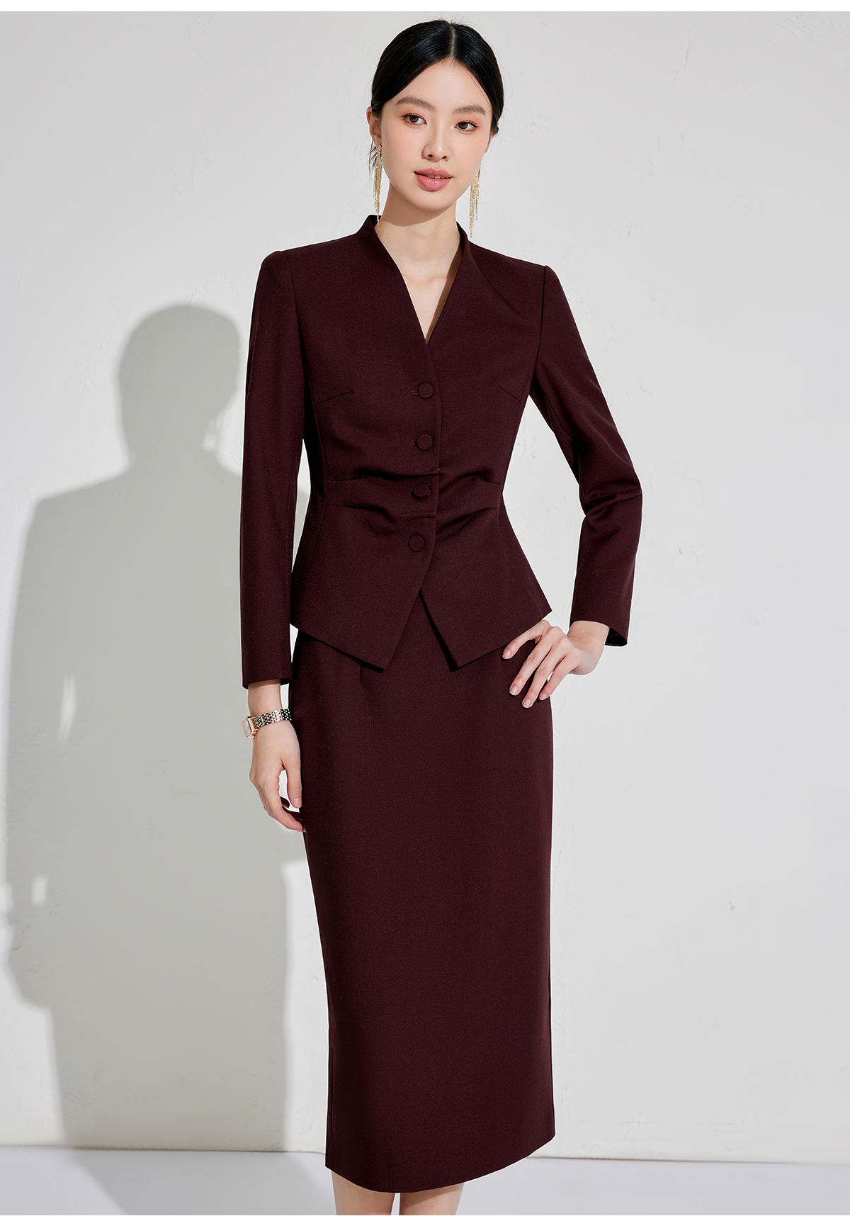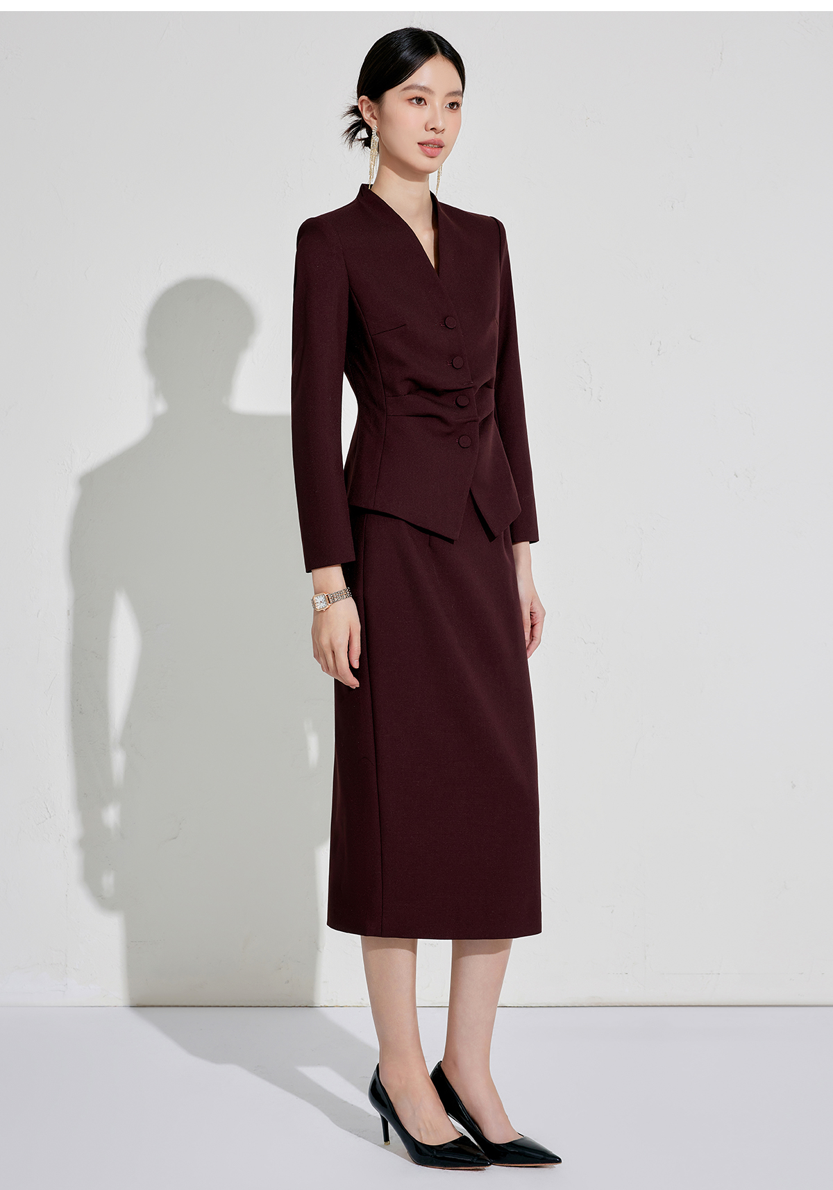 正式场合设计感主持人安可拉红单排扣