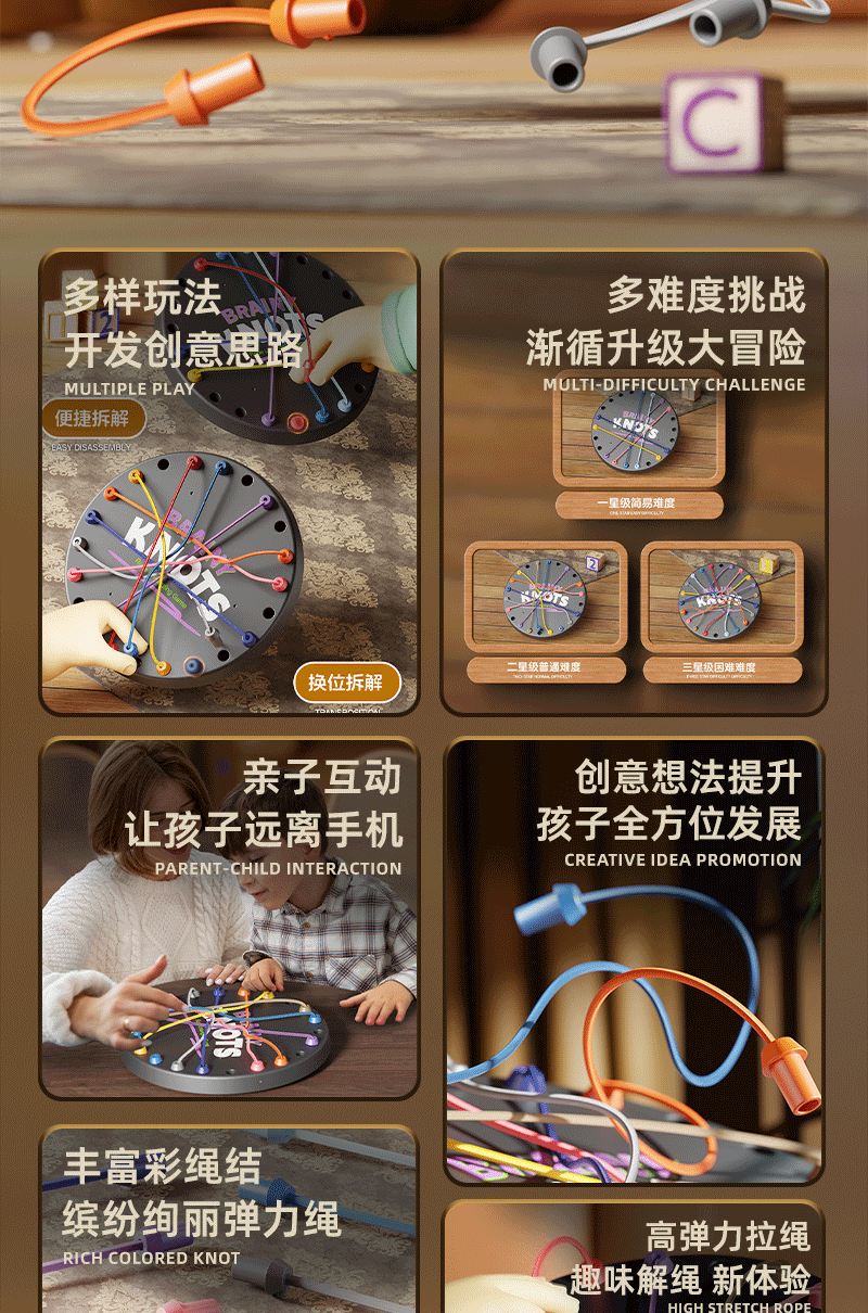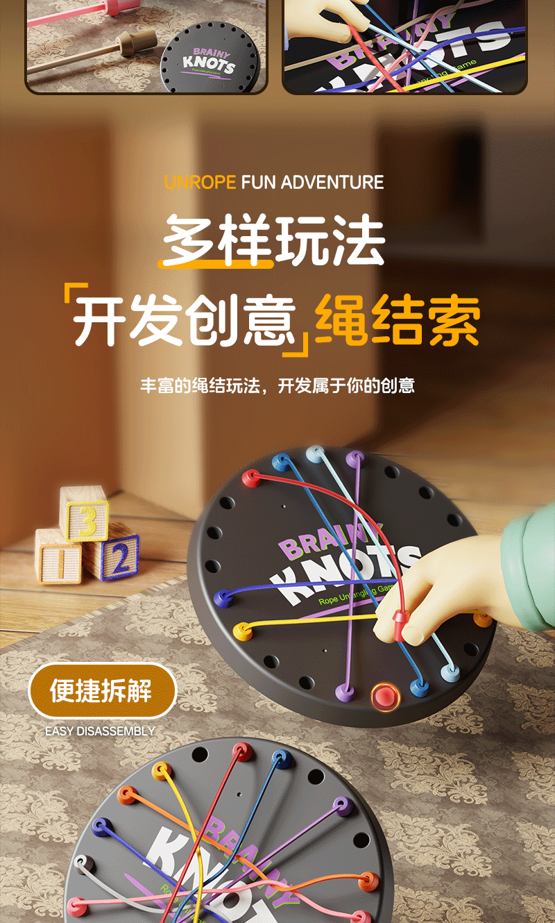 解绳大作战益智儿童逻辑思维挑战桌游锻炼专注力亲子互动游戏玩具