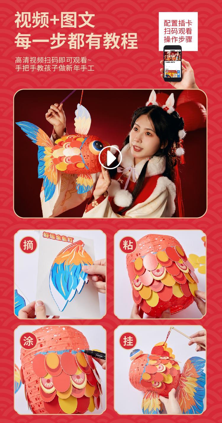 兔年新年手工diy鱼灯春节灯笼手工制作材料包儿童创意锦鲤花灯
