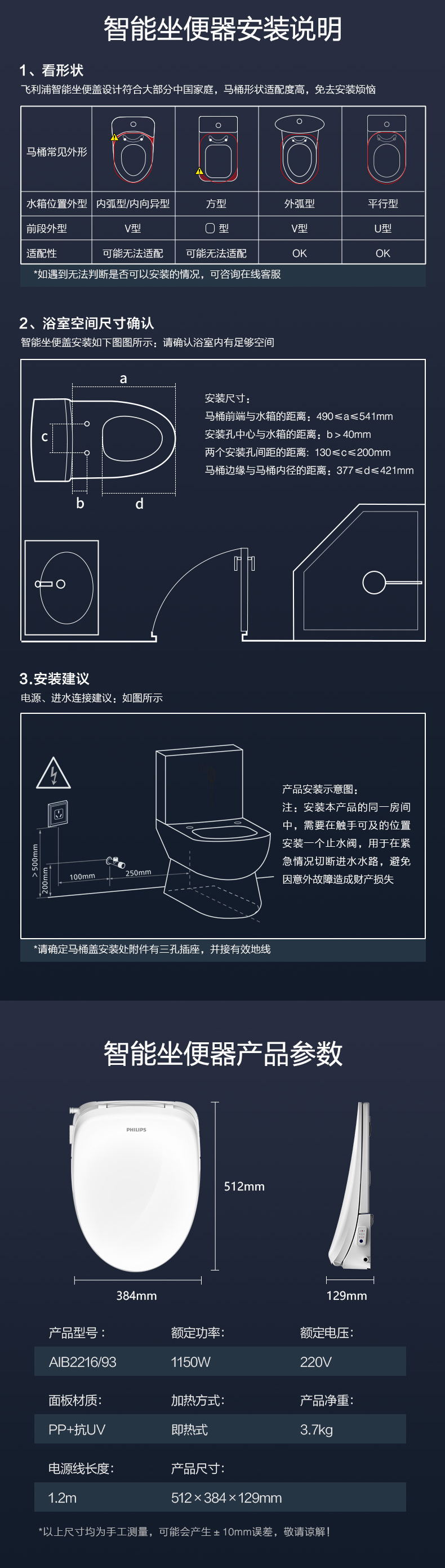 飞利浦(PHILIPS)智能马桶盖即热自动家用智能恒伟坐便盖AIB2216