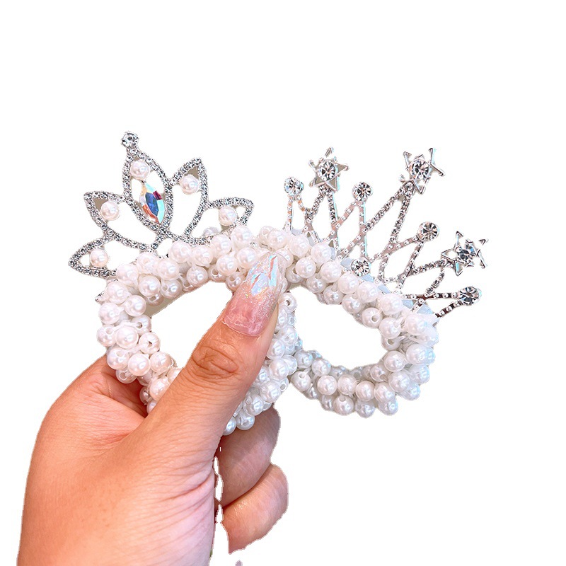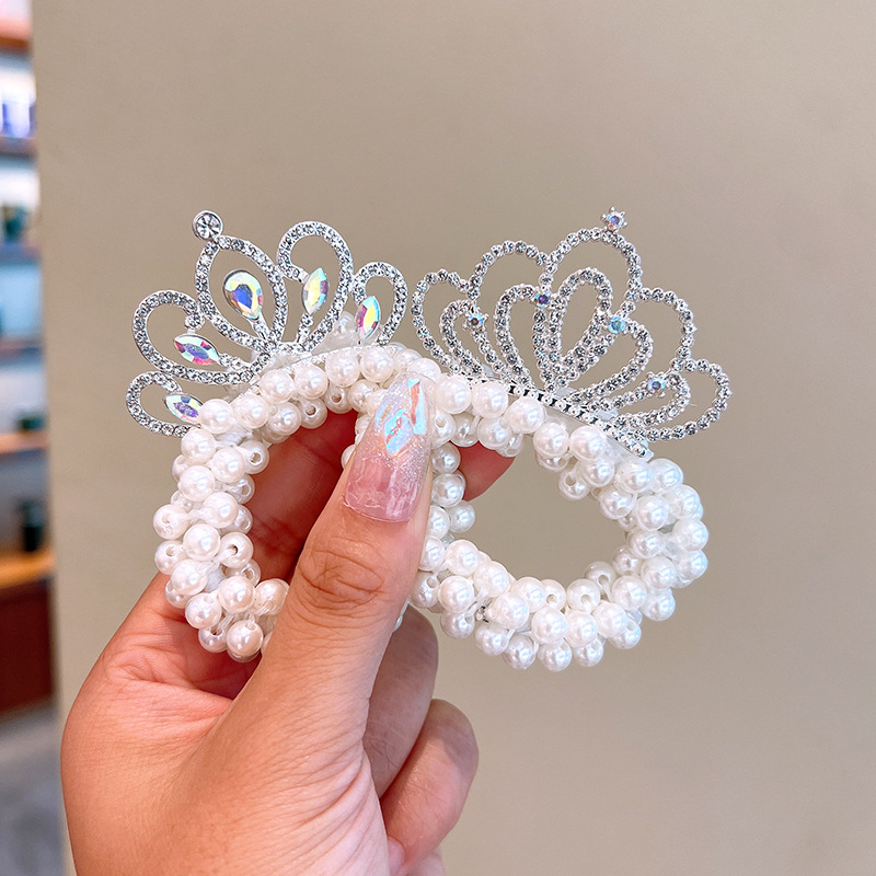 【特惠3个装】儿童皇冠珍珠发圈公主头饰珠珠头绳女孩丸子头神器橡皮筋头花扎头