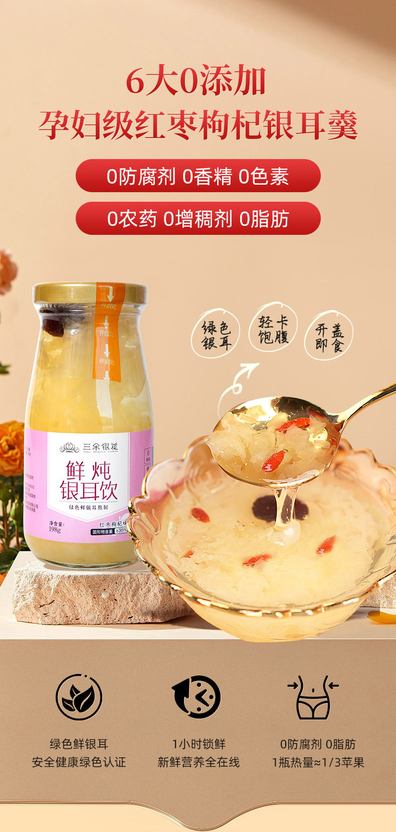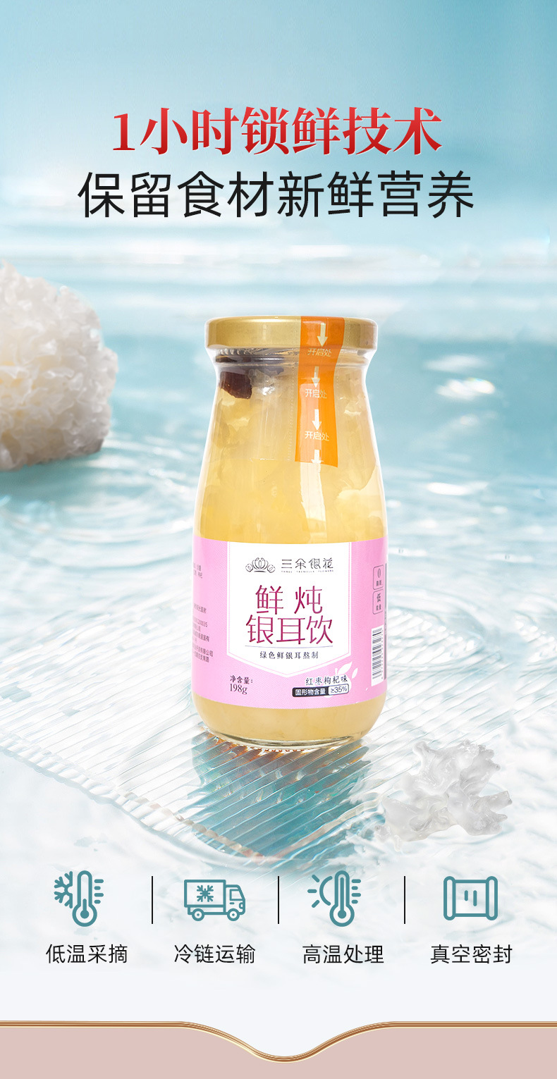 三朵银花鲜炖银耳饮免冲泡即食银耳鲜露红枣枸杞早餐速食代餐甜羹