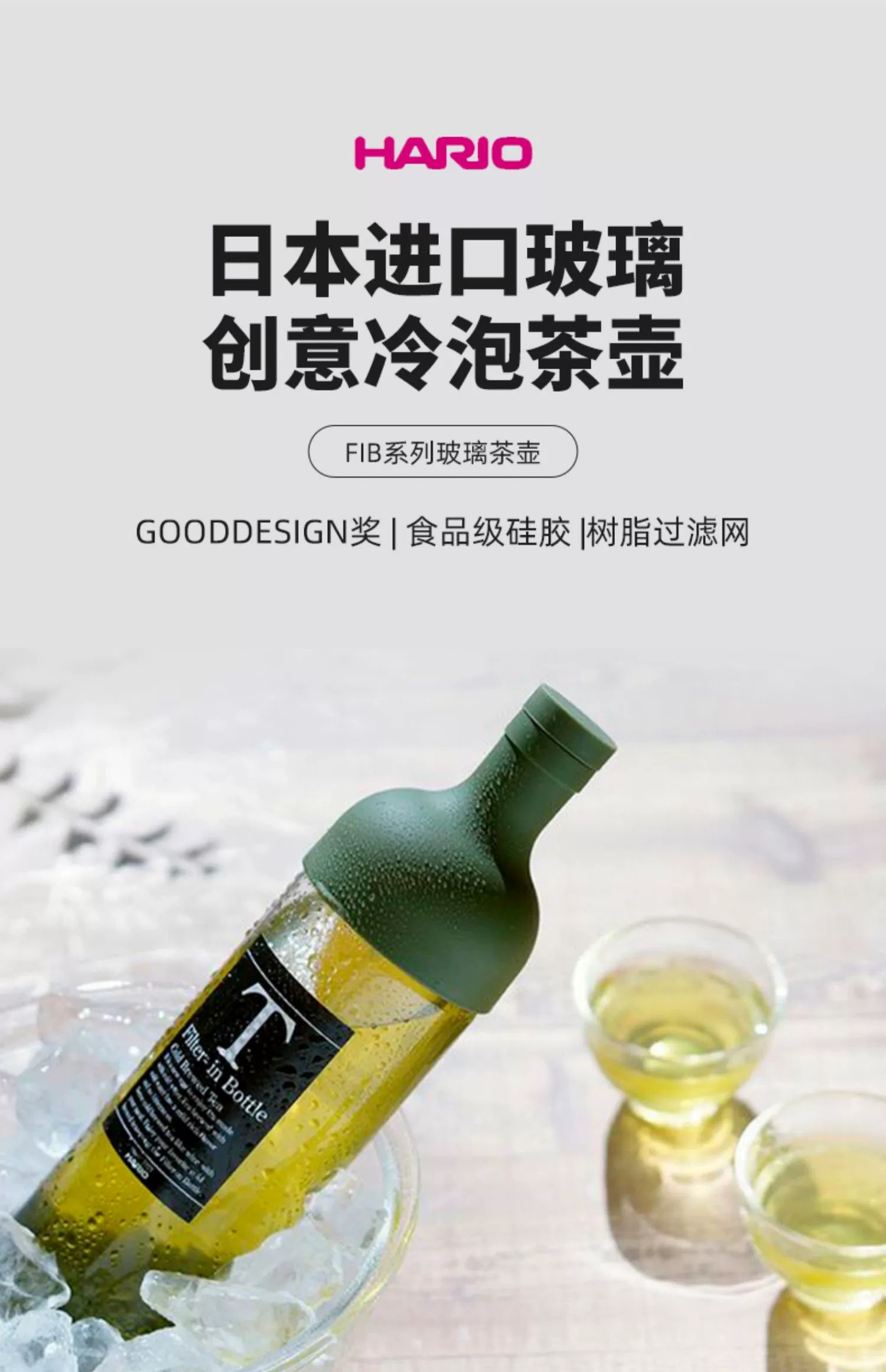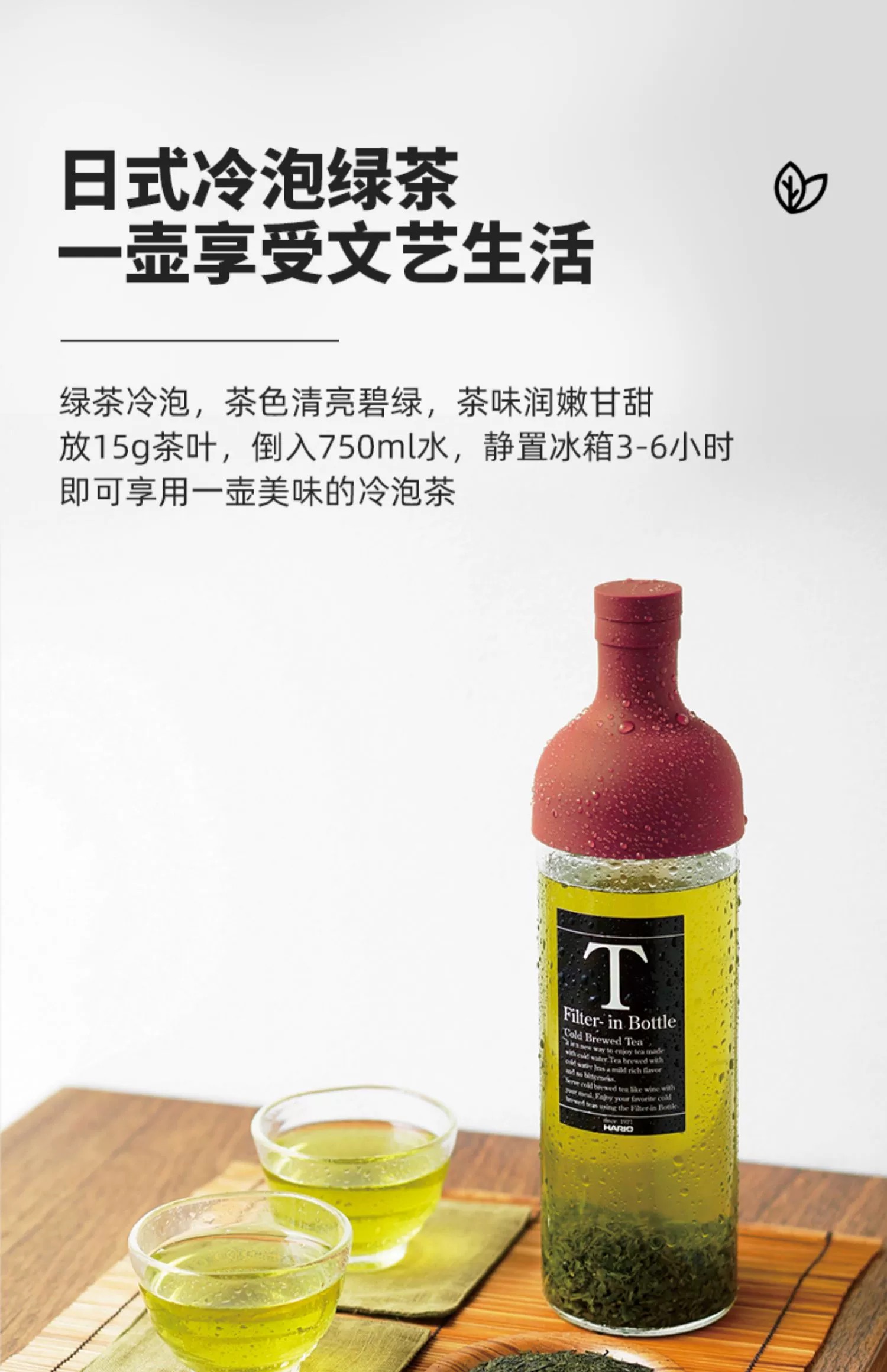 山田土×HARIO 冷泡瓶日式玻璃杯泡茶冷萃壶过滤网白茶冷泡冷萃杯