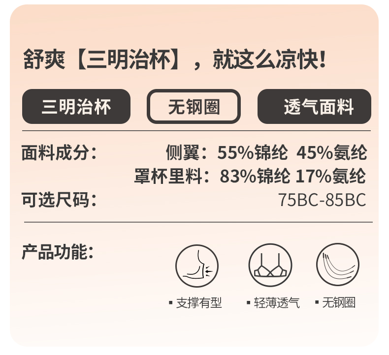 雅黛丽内衣女大胸显小薄款透气文胸无钢圈收副乳防下垂调整型胸罩