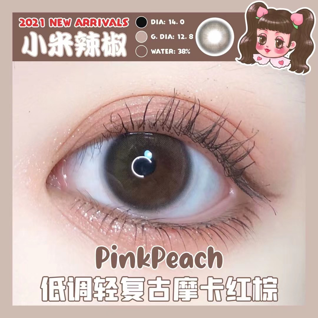 pinkpeach·年抛 少女感满分 小米辣椒/枫糖桂花 染色直径12.8mm 素颜感的终极奥秘 备注双眼度数