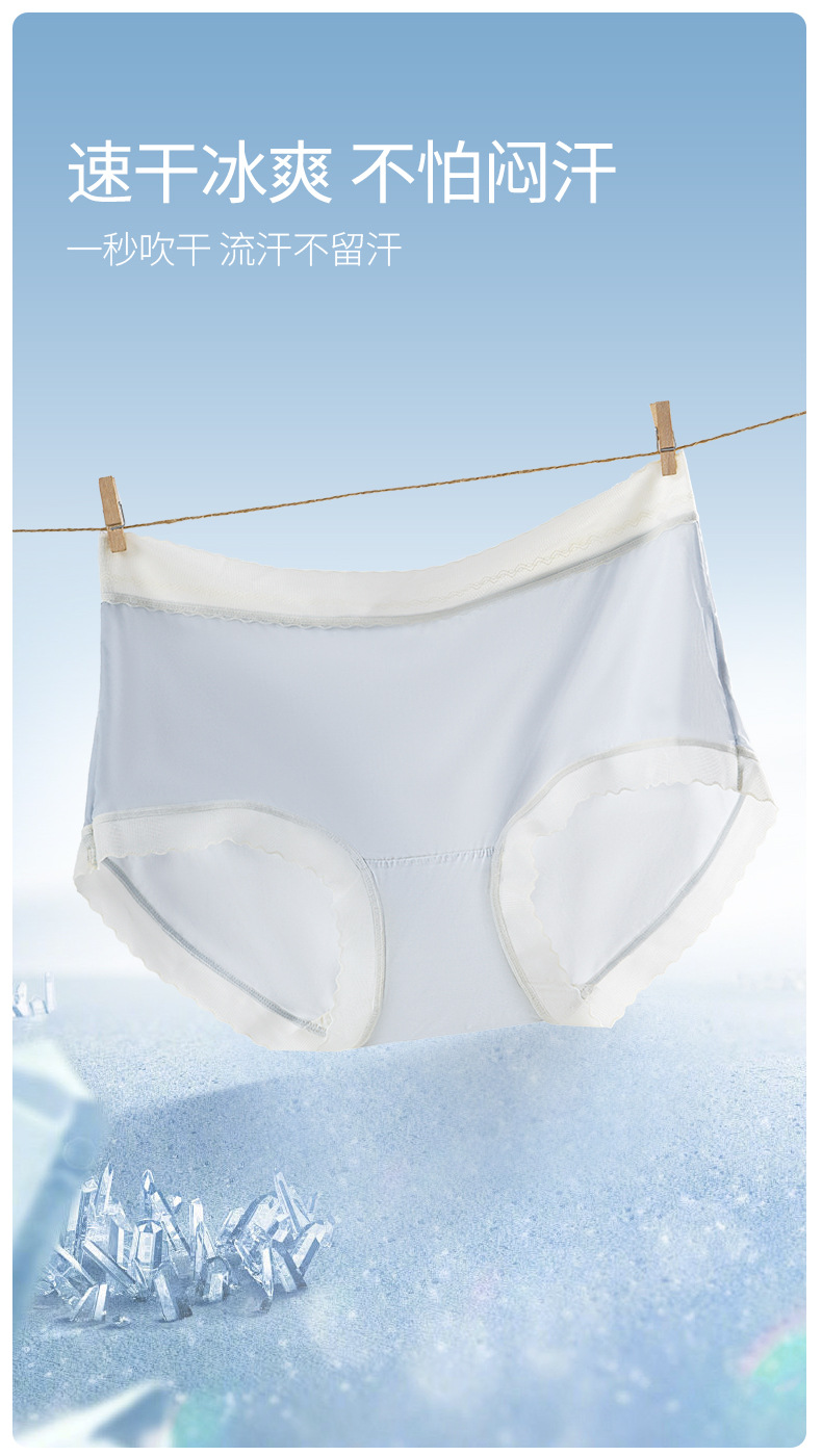 【冰丝凉感!7A桑蚕丝水光内裤】薄如蝉翼,舒爽透气,夏季冰丝内裤女舒适女生内裤纯色高弹蕾丝女士内裤不夹臀