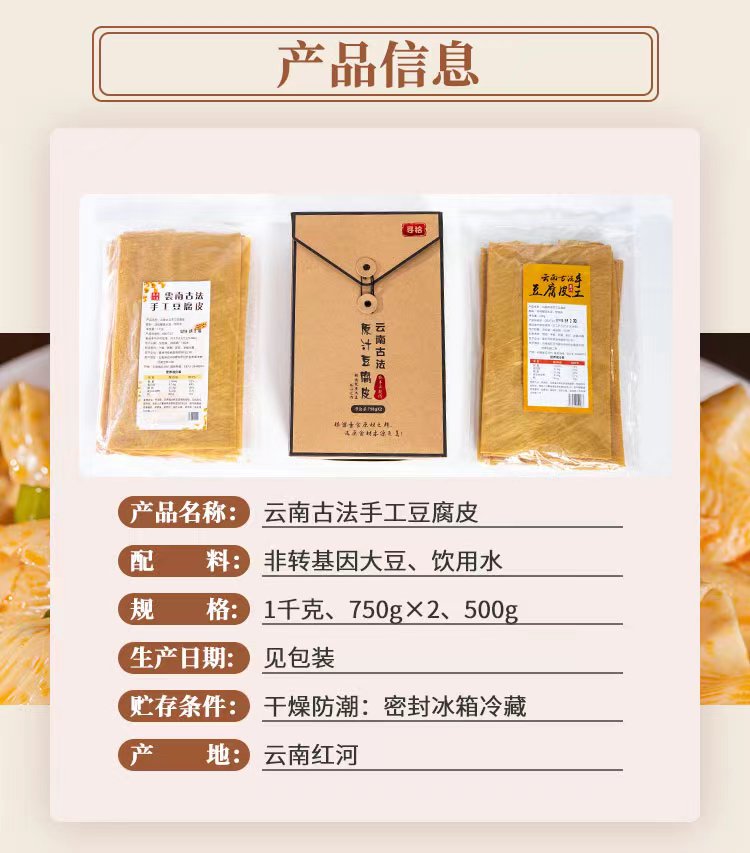 【产地直发】云南古法原汁豆腐皮1斤-3斤 产地直发 无任何添加 纯净味美 营养丰富 无豆腐皮不火锅 1斤约7张 2月3日晚上
