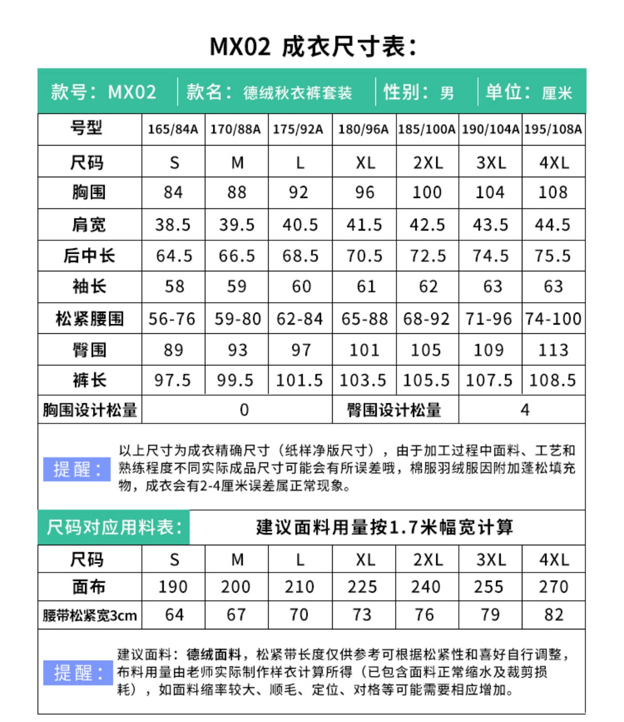 裁缝学苑MX02新款德绒无痕加绒秋衣秋裤纸样套装男装内衣服装打板