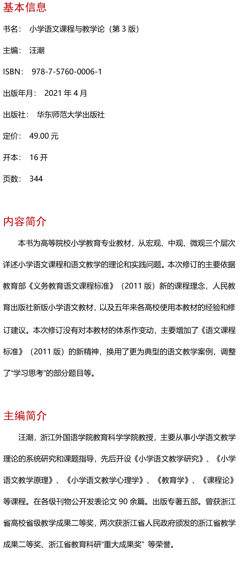 小学语文课程与教学论 第3版 小学教育专业教材 课程性质课程标准教育文化课程资源教材建设教育智慧