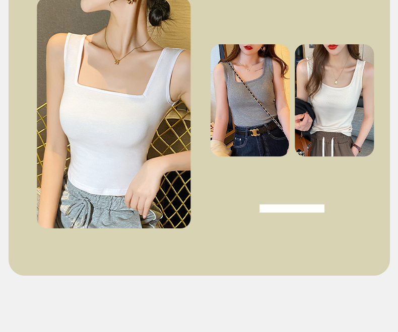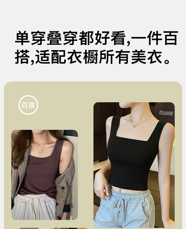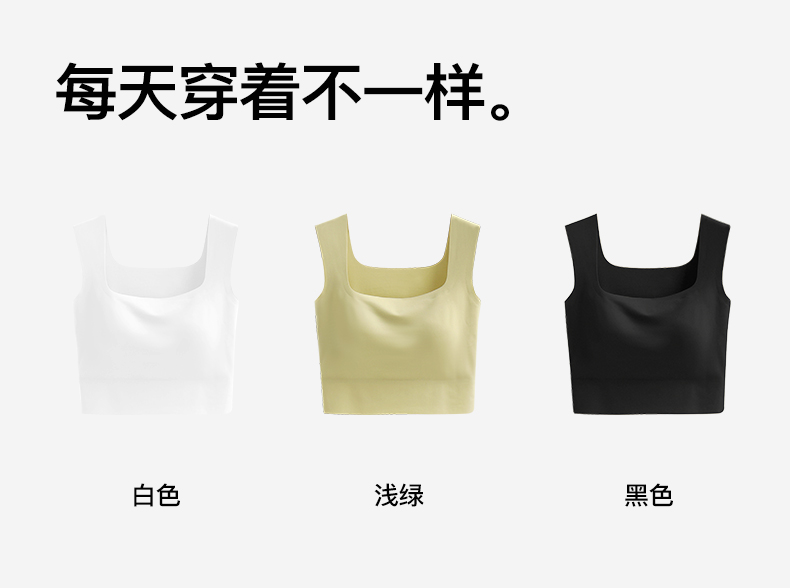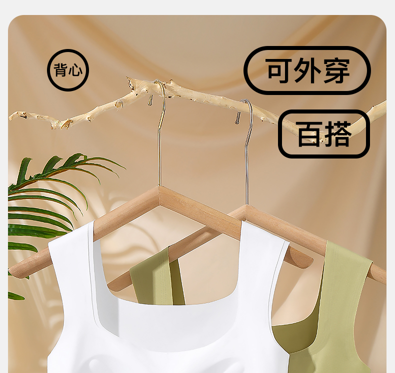 梦芭蒂女士方领美背无痕冰丝透气免穿文胸宽肩带时尚内搭吊带背心
