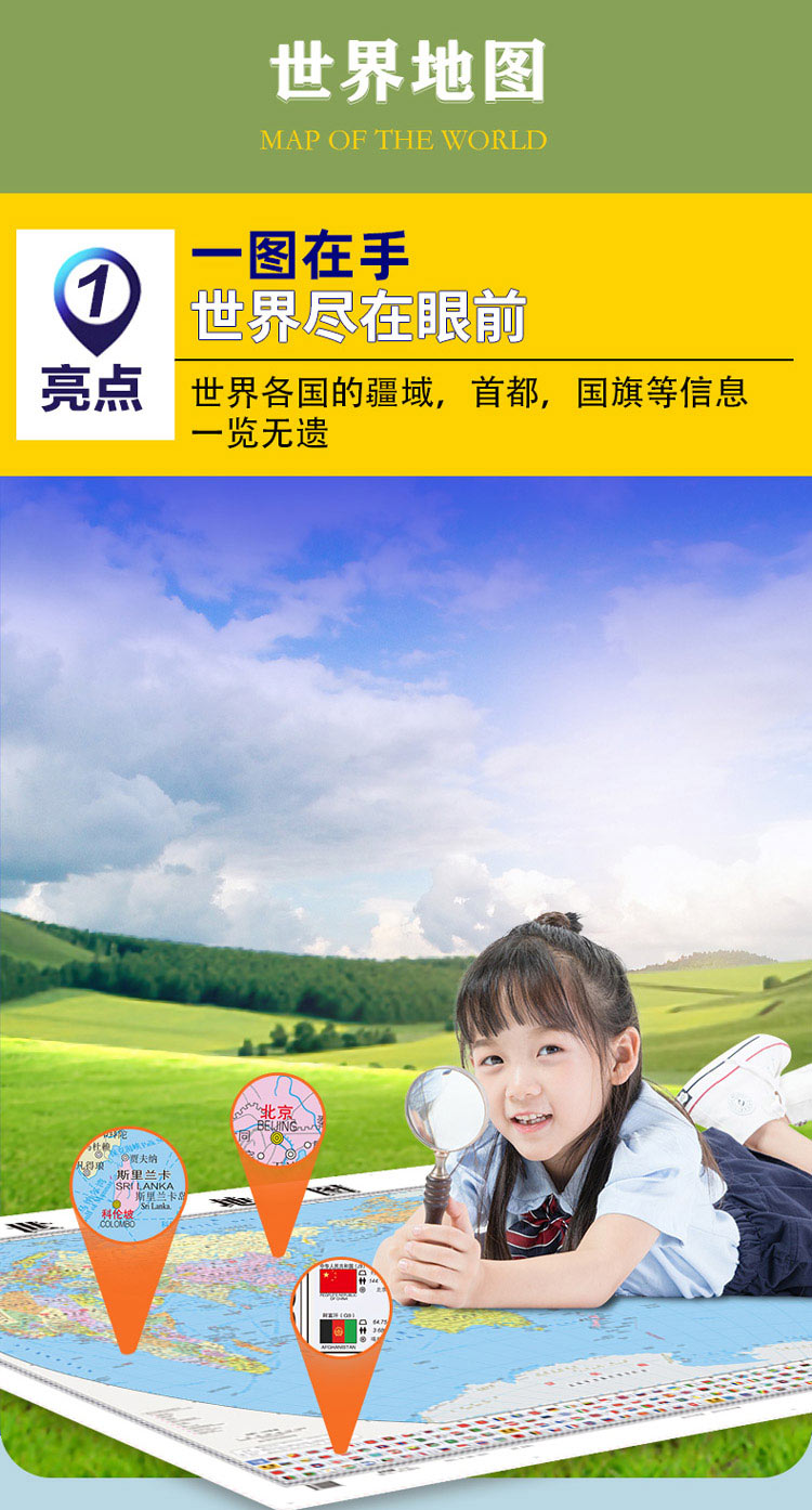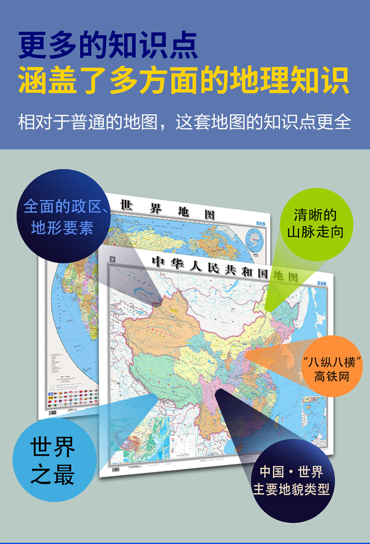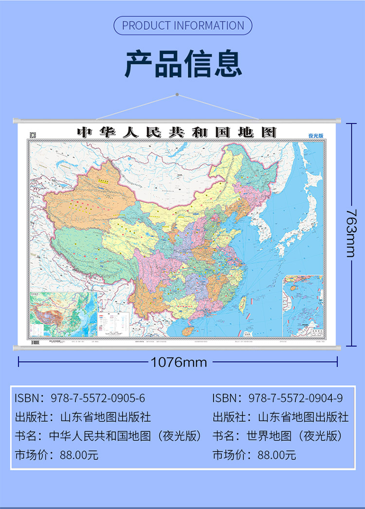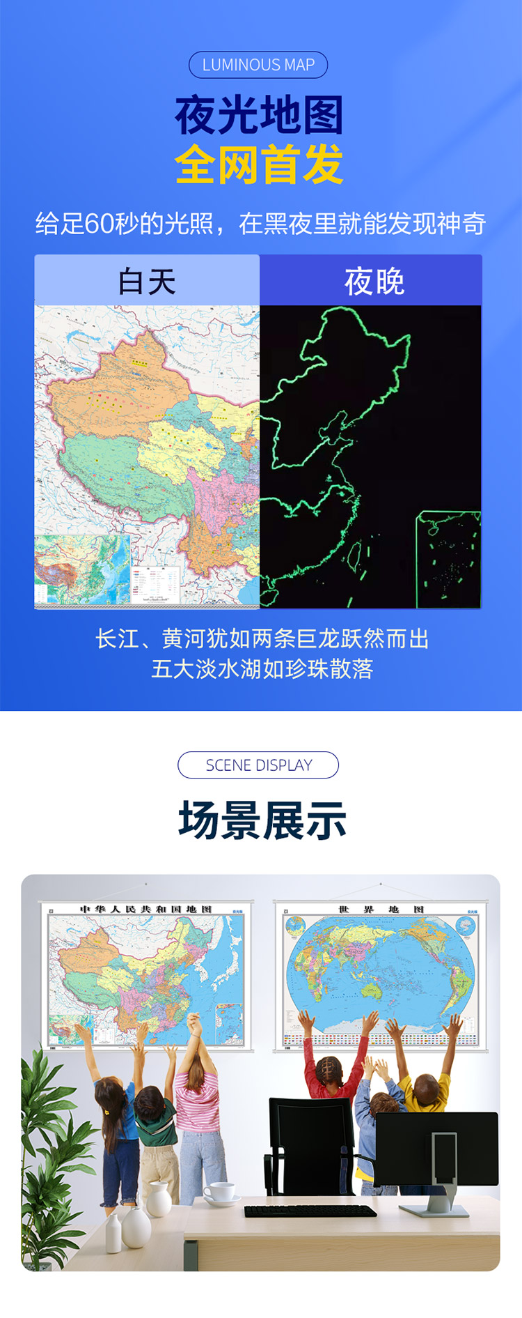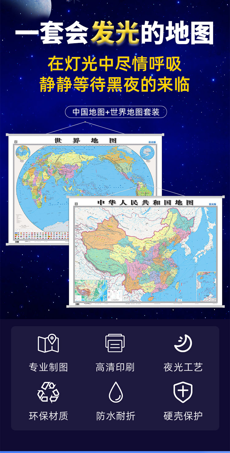 【夜光版】中国地图+世界地图(挂杆套装)1095*780mm 一套会发光的地图