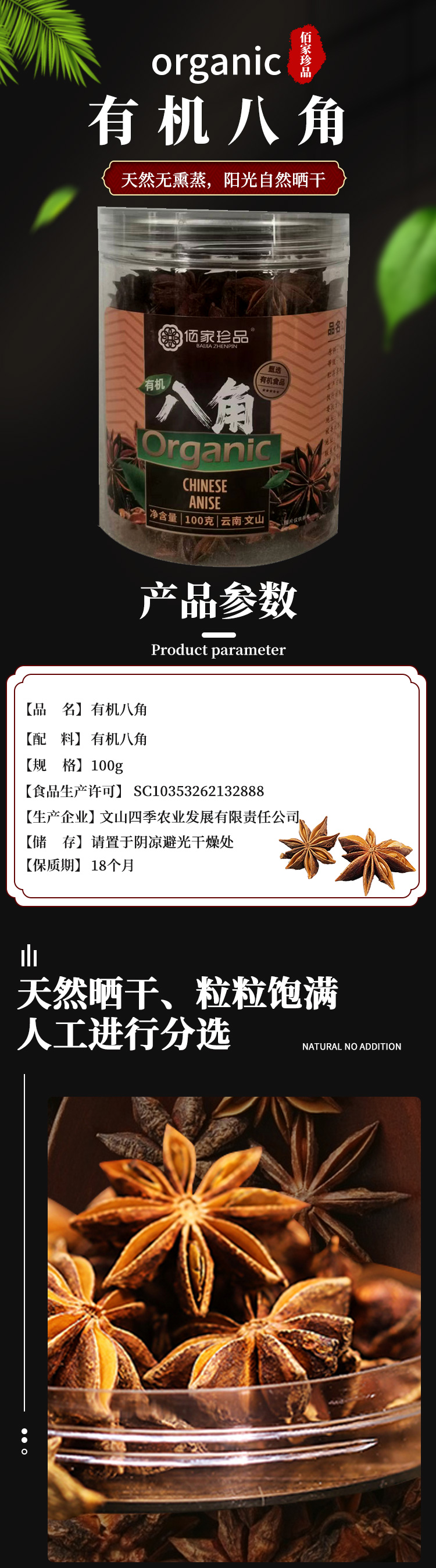 有机八角 100g 大料 调料 厨房烹饪香辛料卤料包邮