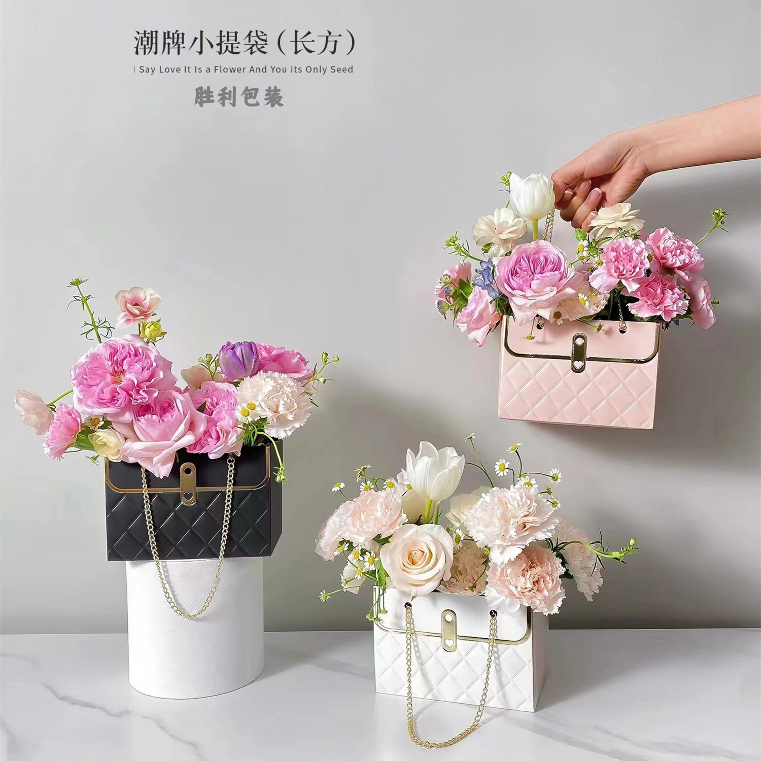 潮牌手提袋鲜花礼盒