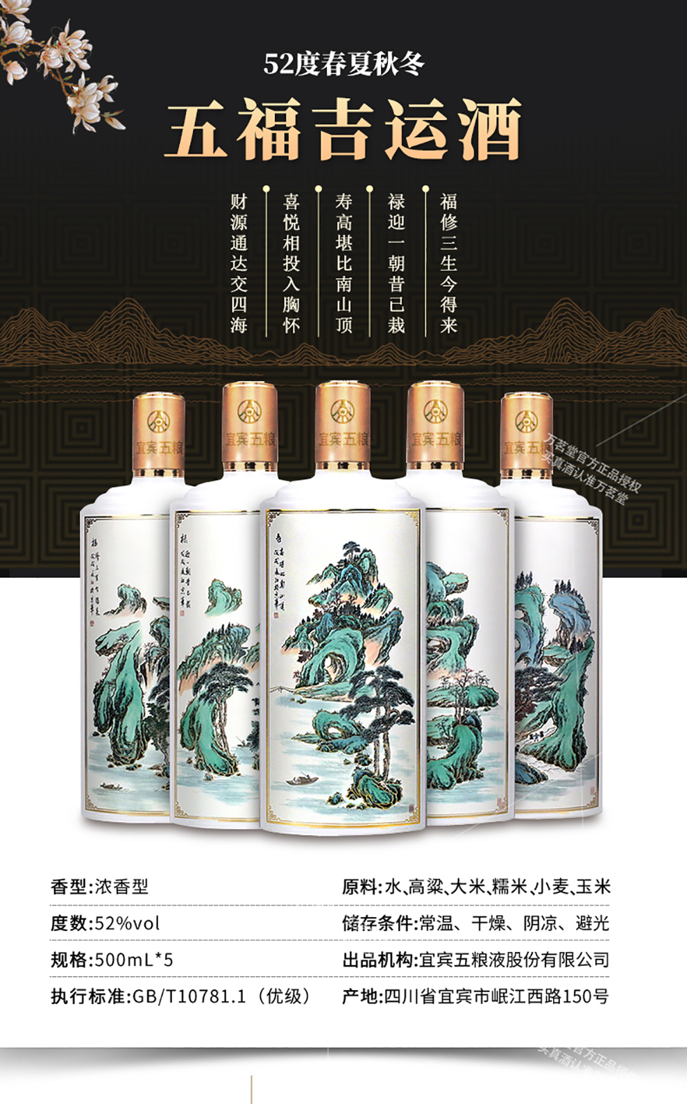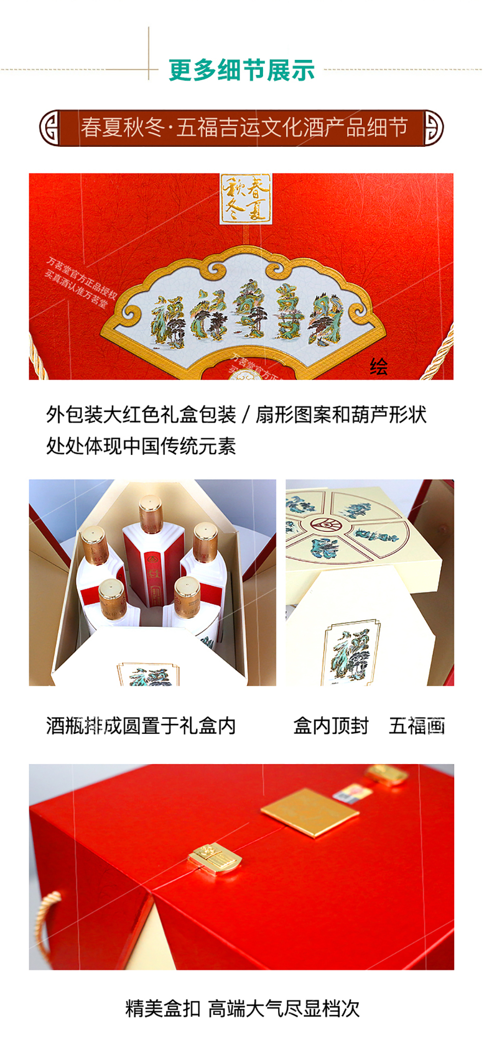 春夏秋冬五福吉运酒 52度浓香型白酒 500ml*5瓶 整套 送礼佳选