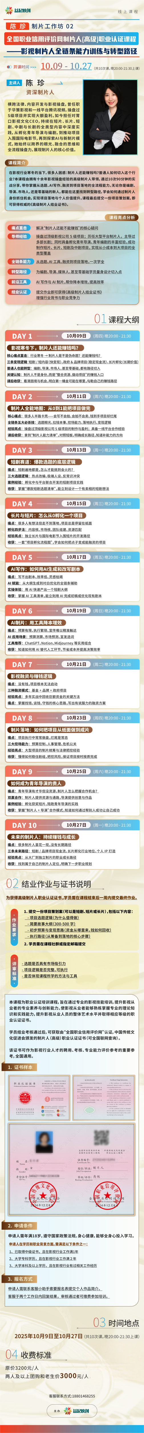 咨询、购买后请主动添加:课程小助手微信(18801468255),备注:制片高级职业认证