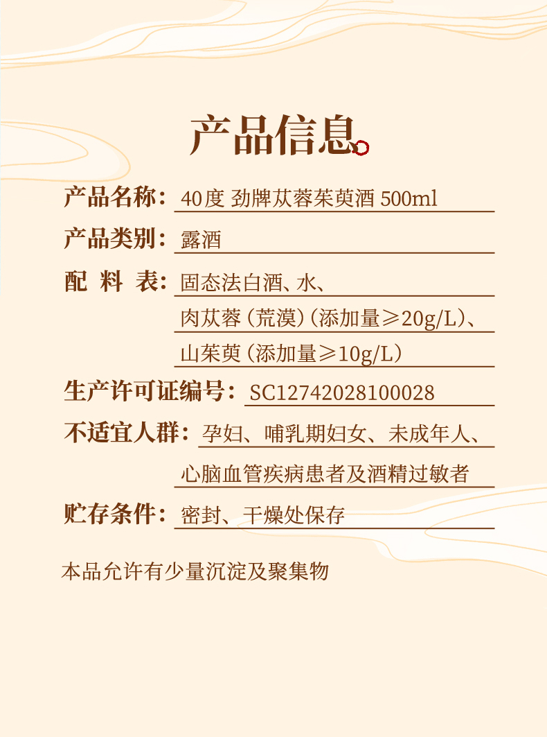 【新品】500ml40 度劲牌苁蓉茱萸酒