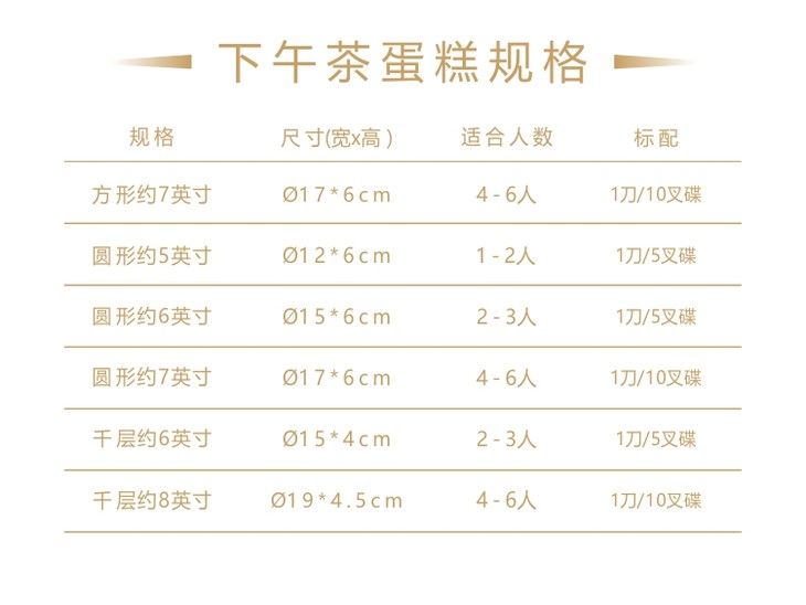 温馨提示:此产品属于下午茶小件,只提供10碟10叉1刀,暂不提供生日蜡烛、生日牌、生日帽配件服务,敬请原谅!