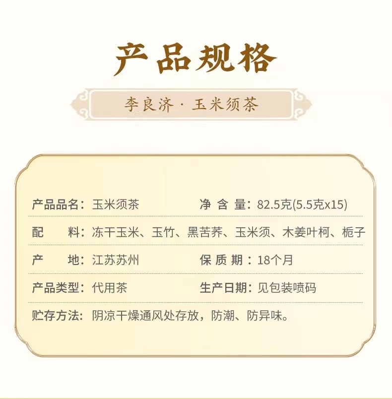 【利水祛湿 降糖降脂】李良济 玉米须茶 5.5g*15袋