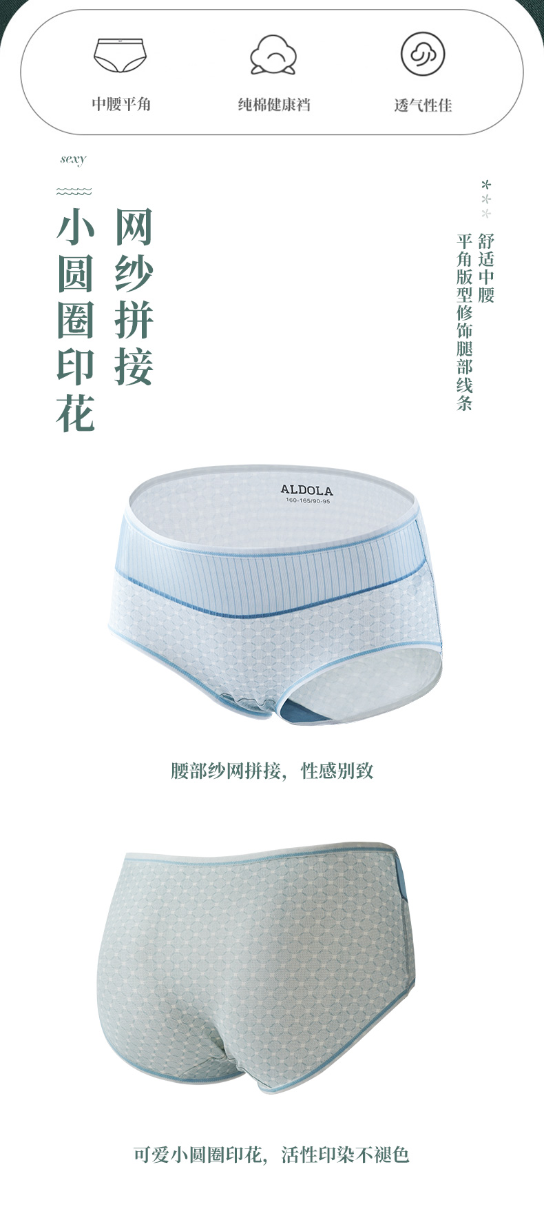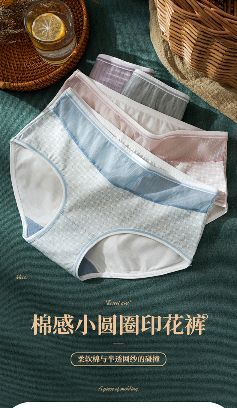 雅黛丽女士内裤性感网纱腰头纯棉底裆中腰平角裤单条装底裤DYK03055