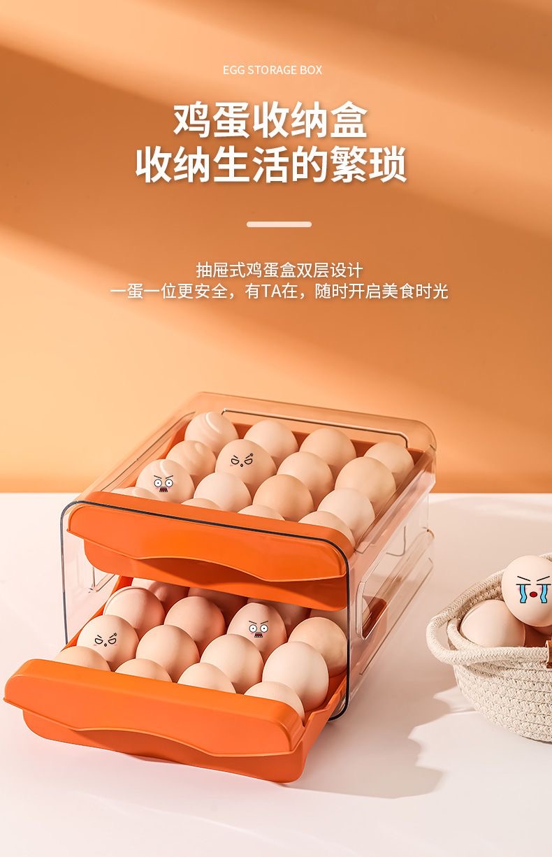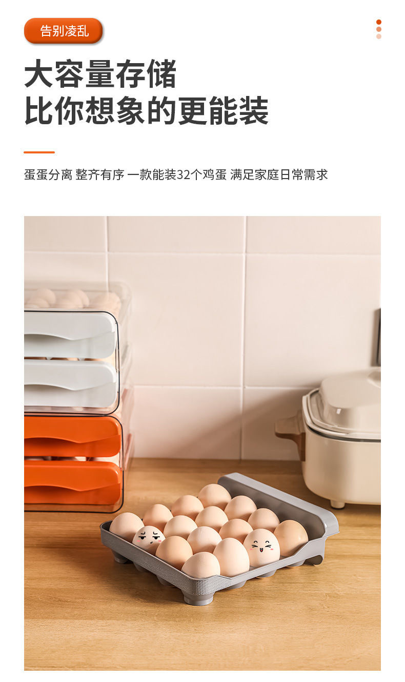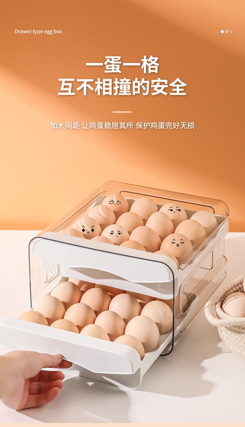 鸡蛋盒抽屉式保鲜收纳盒塑料冰箱用放鸡蛋的盒子防摔厨房蛋盒架托