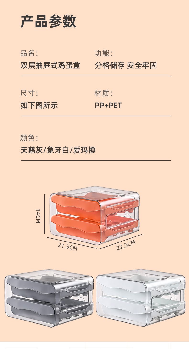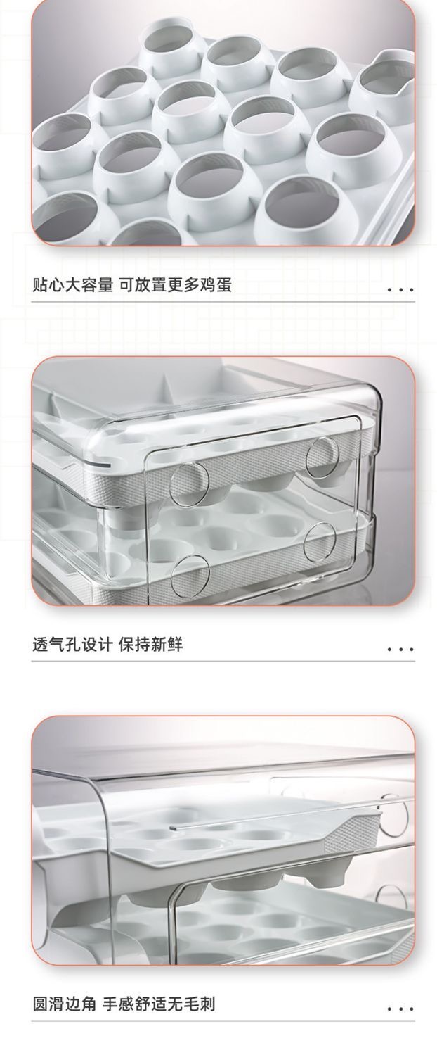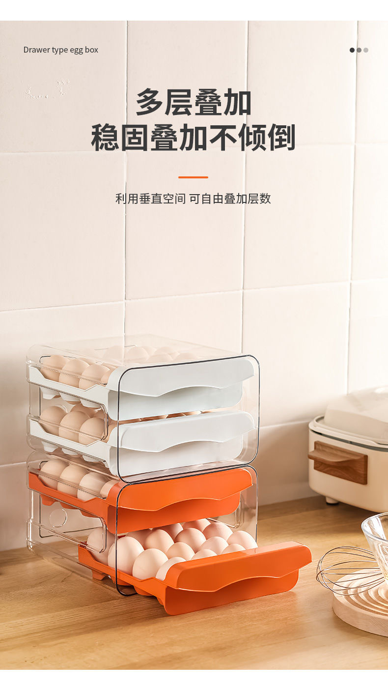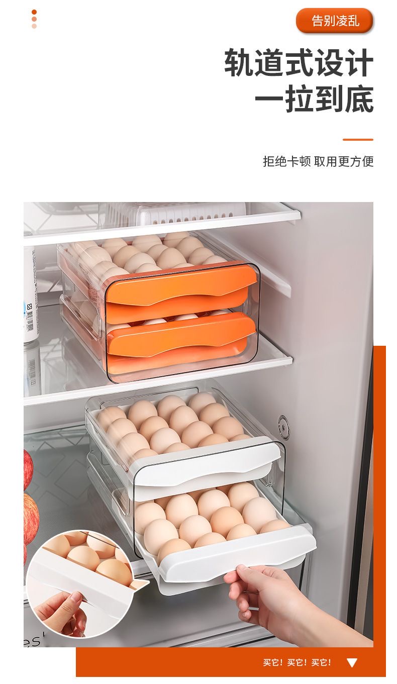 【食品级!鸡蛋抽屉式收纳盒】鸡蛋收纳盒抽屉式冰箱专用家用,抽屉式设计拿取更方便,食品级双层密封保鲜厨房整理神器QQ