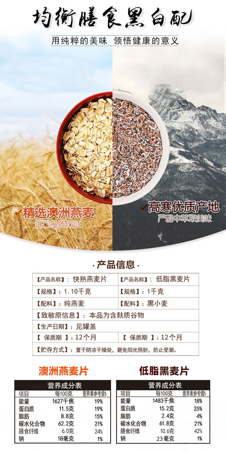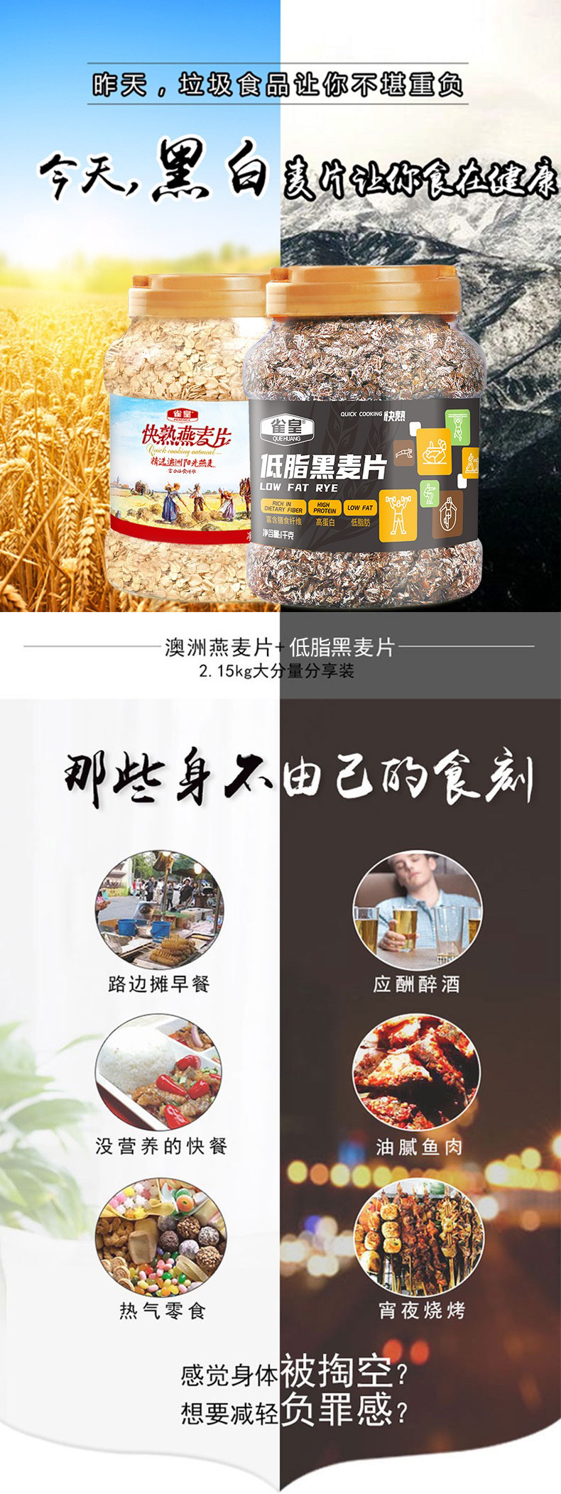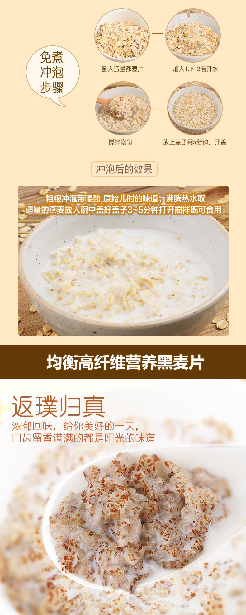 雀皇 纯燕麦片原味营养冲饮谷物快熟黑白燕麦片早餐