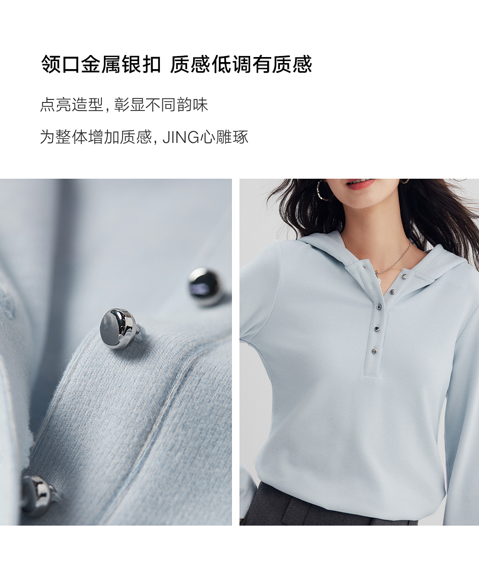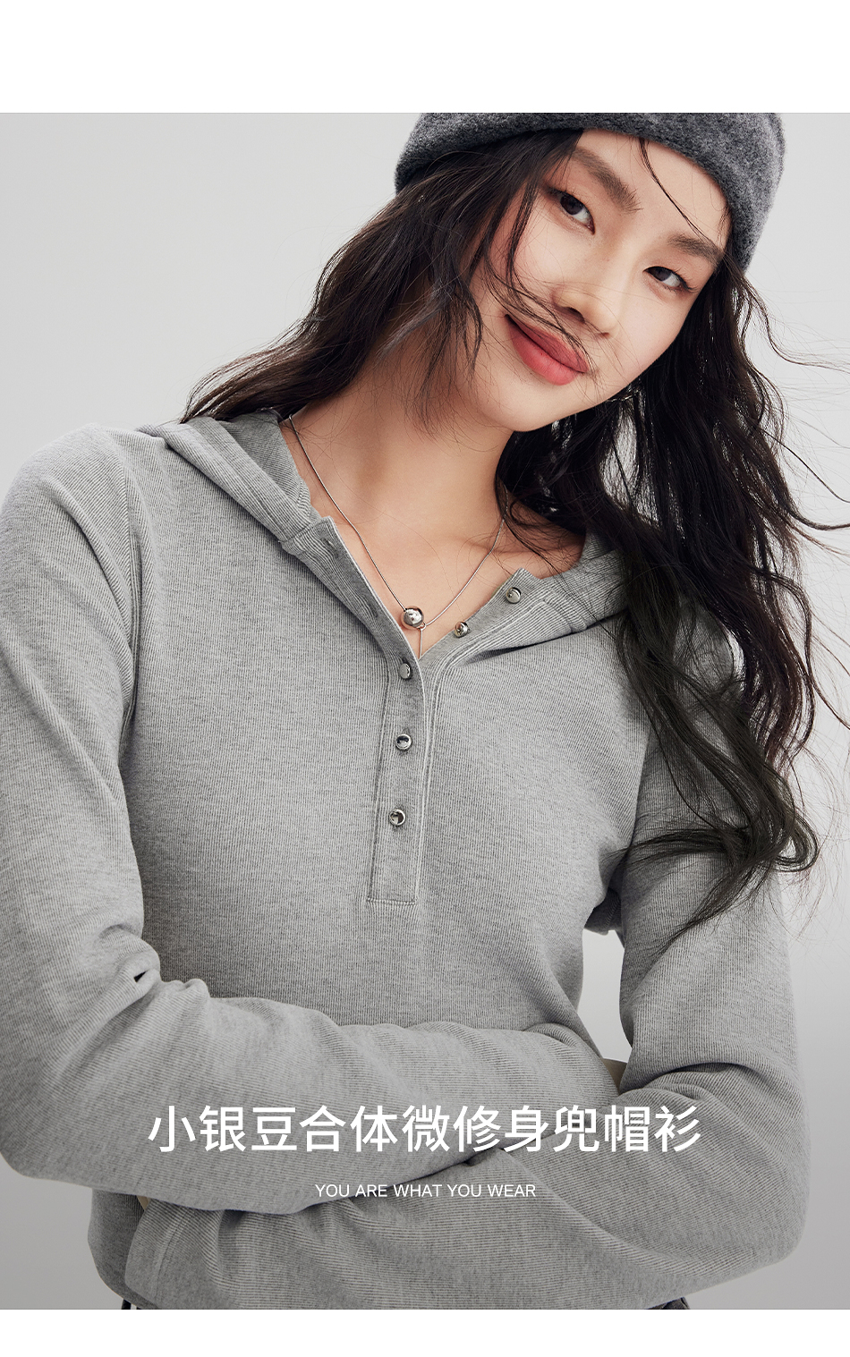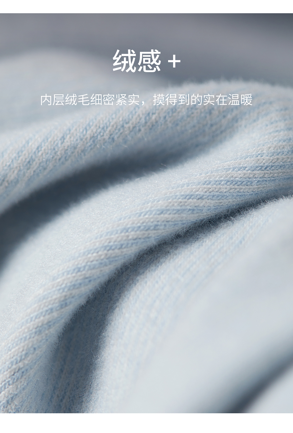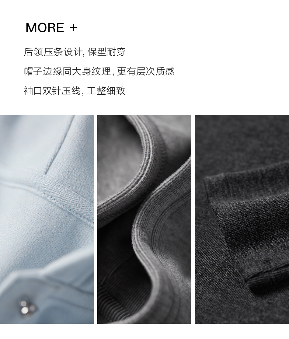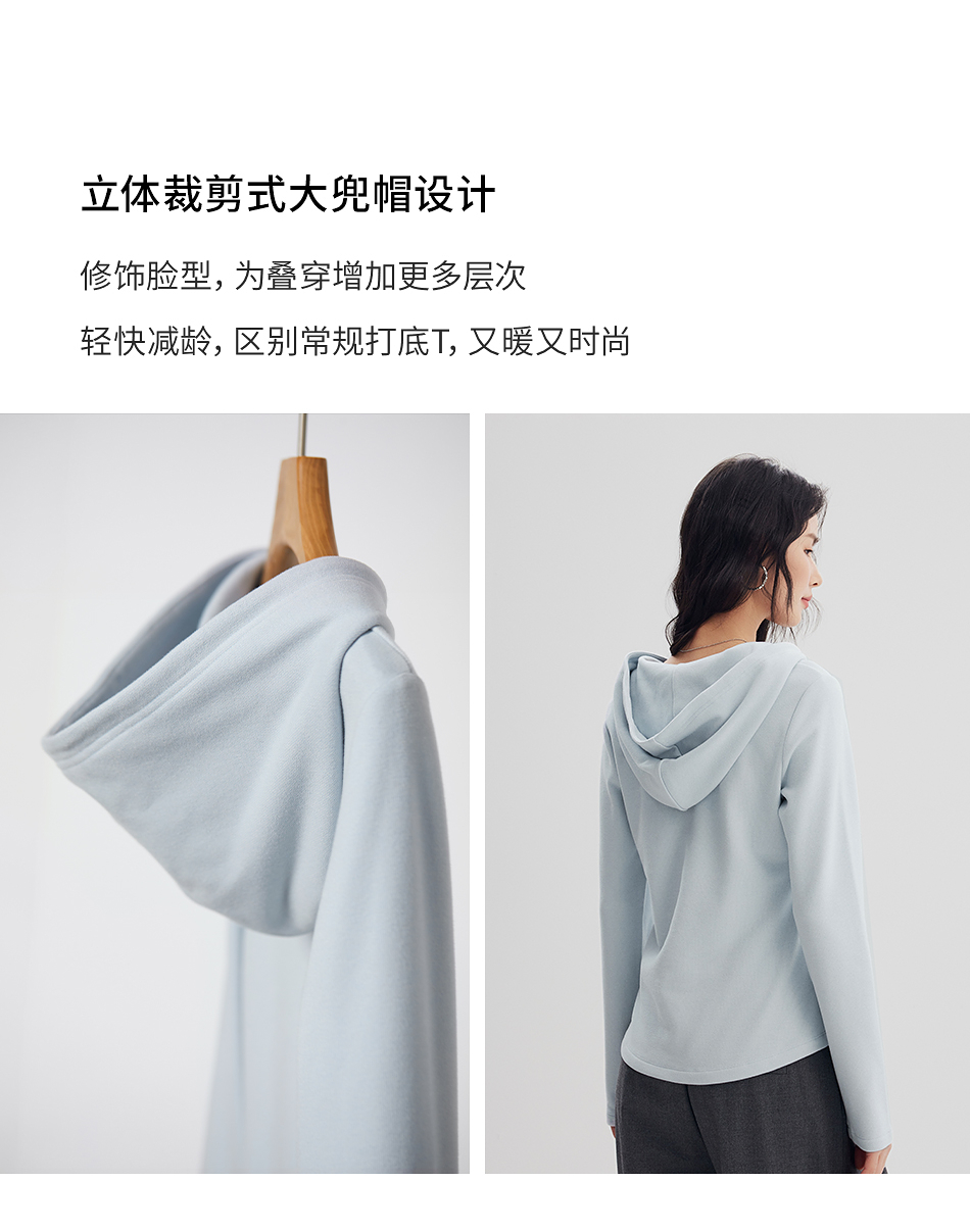棉仓357601001-小银豆牙签纹肌理感暖感绒兜帽合体微修身长袖T