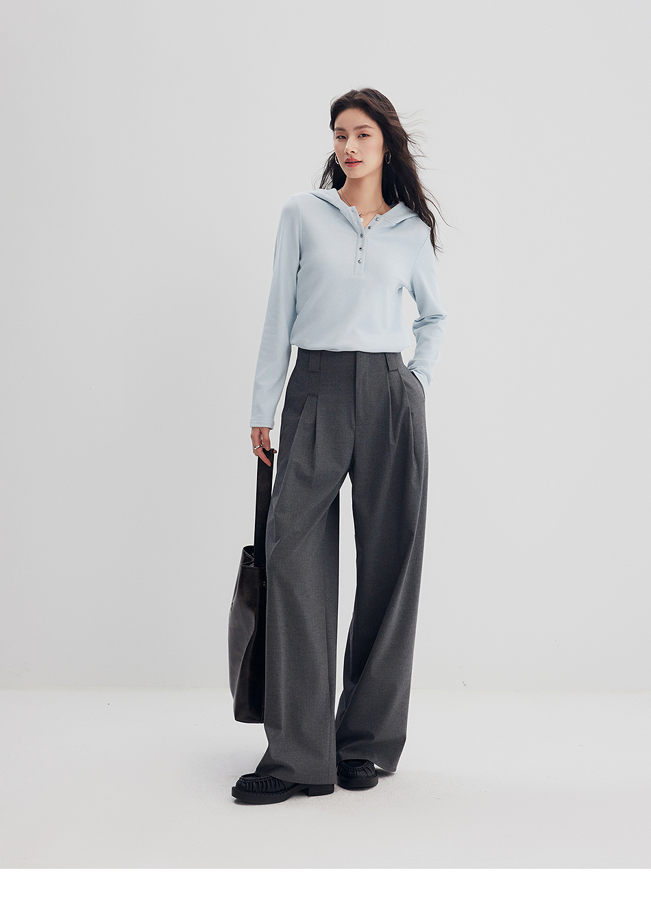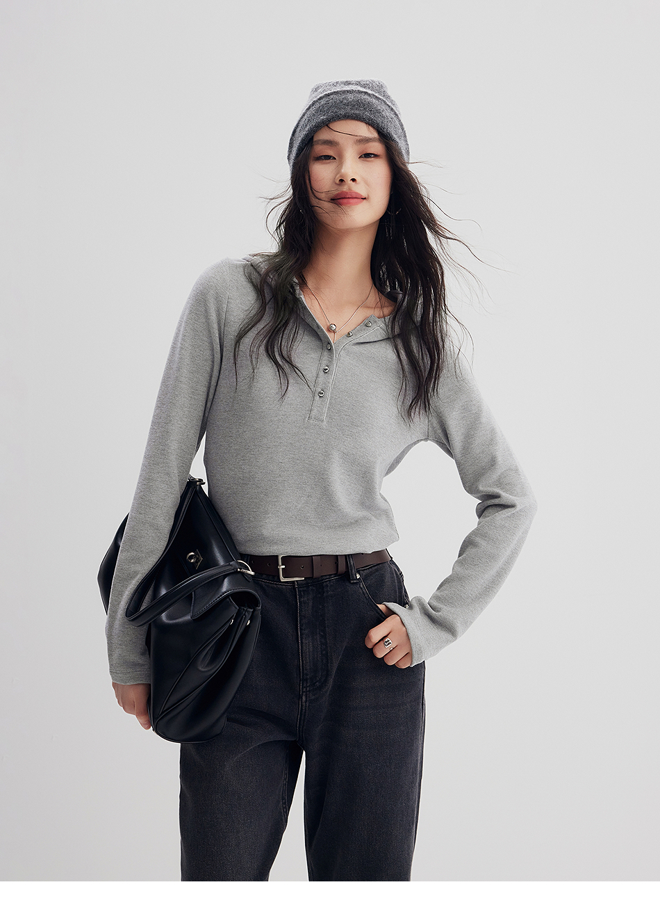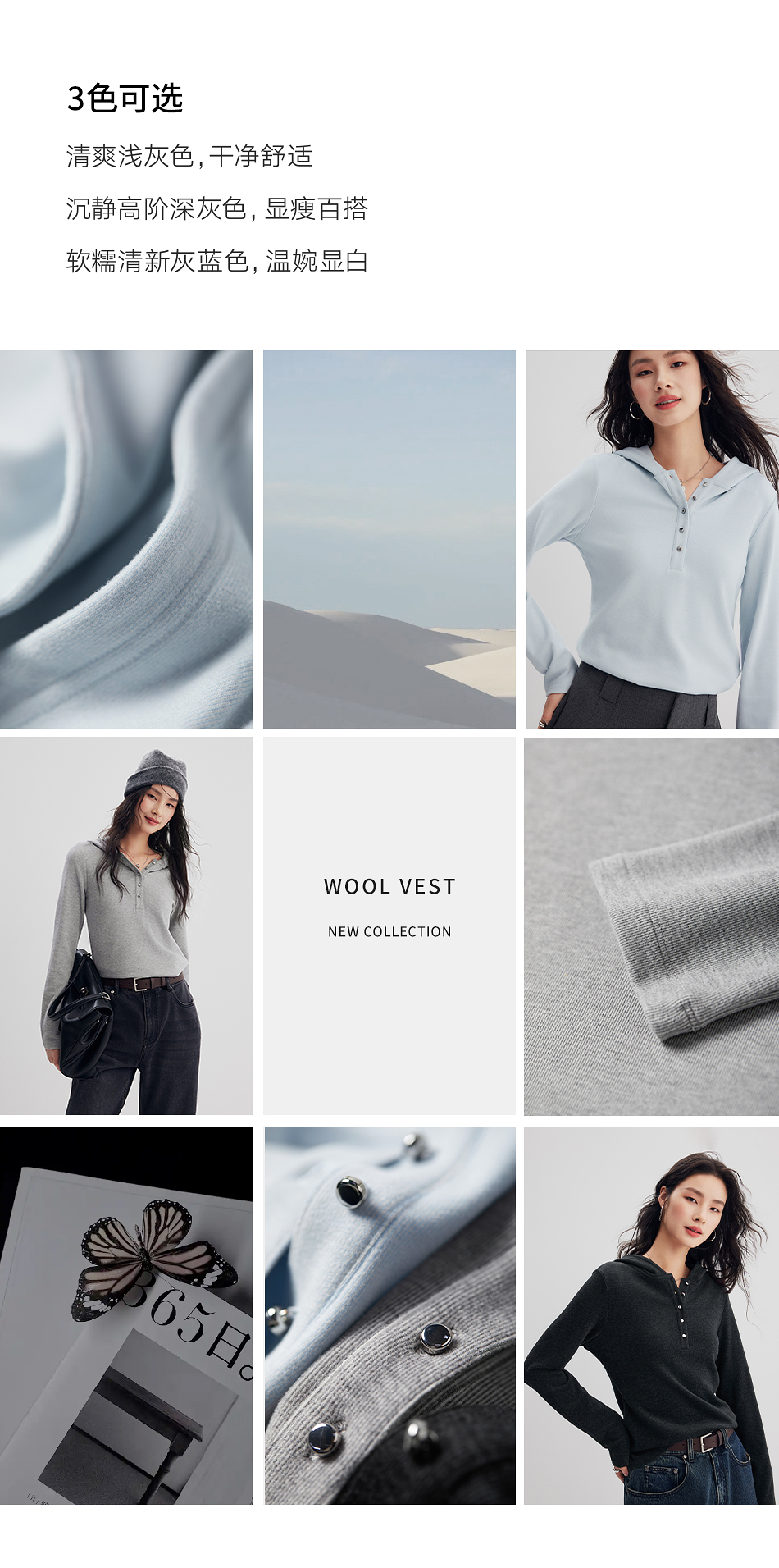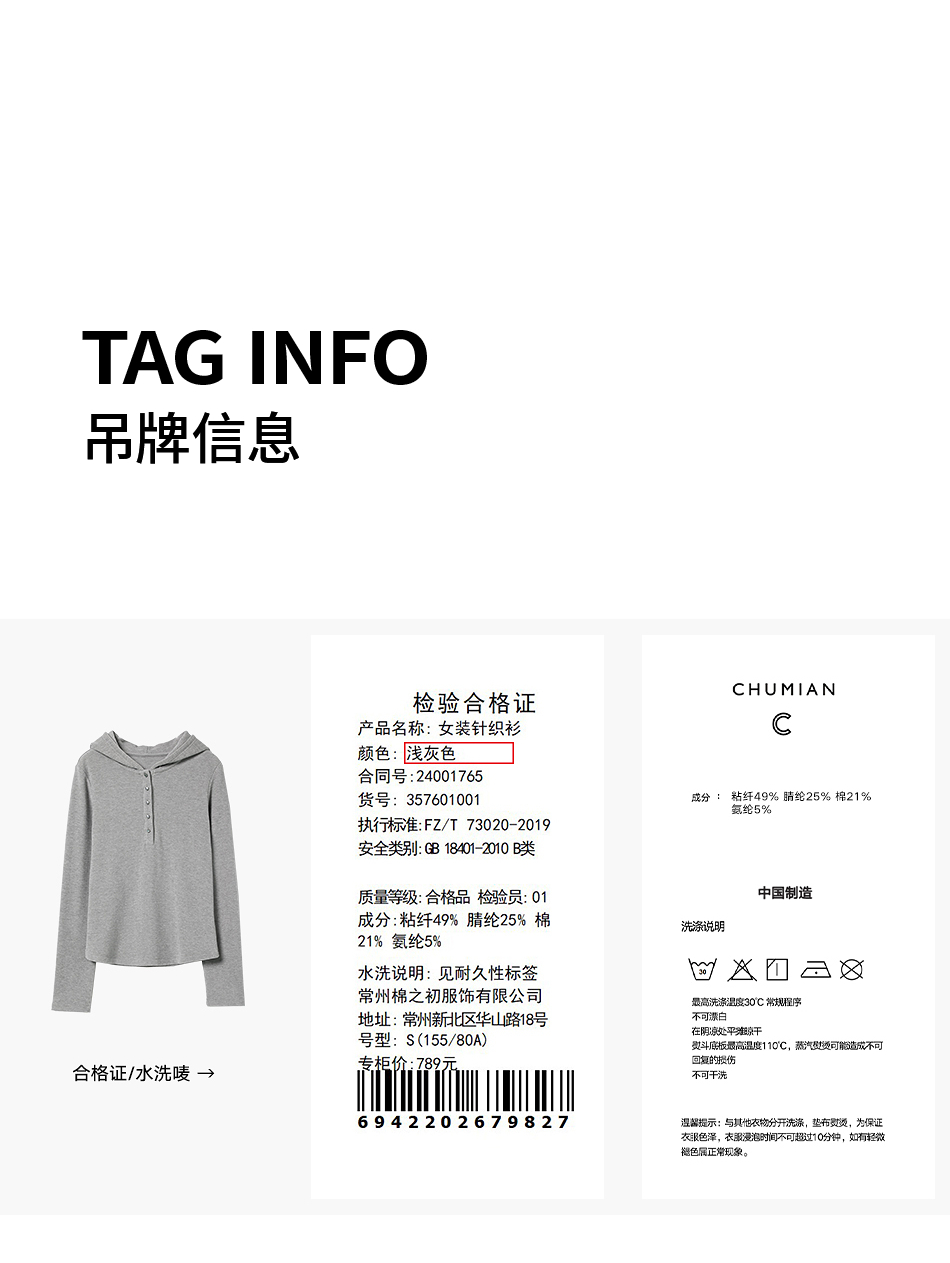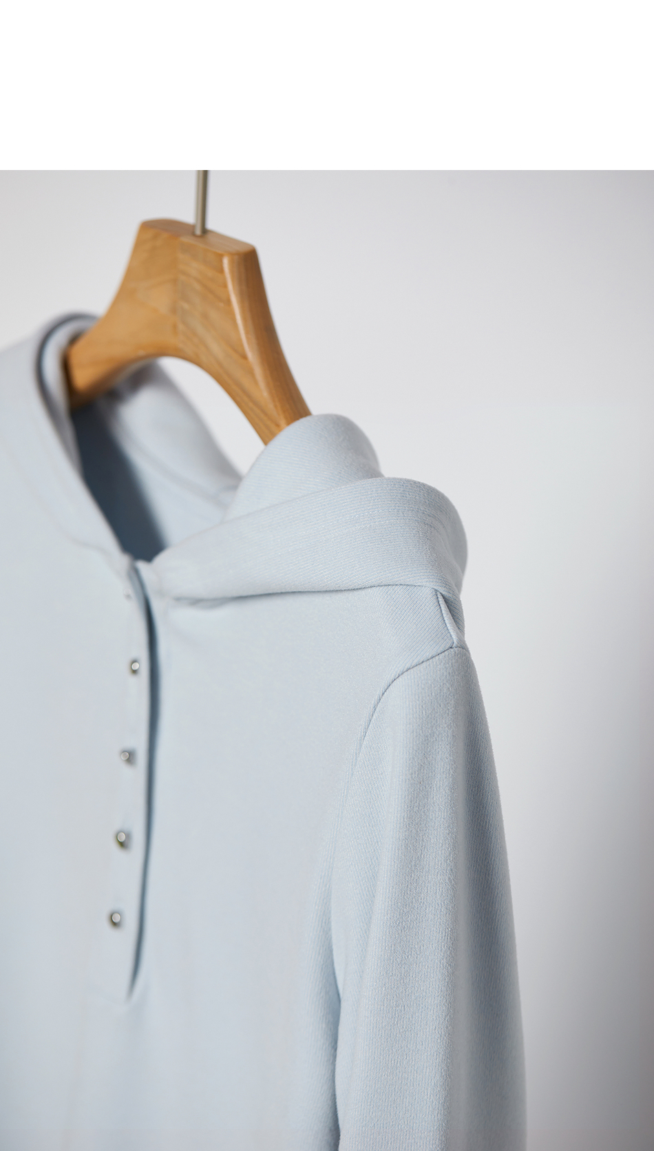 棉仓357601001-小银豆牙签纹肌理感暖感绒兜帽合体微修身长袖T