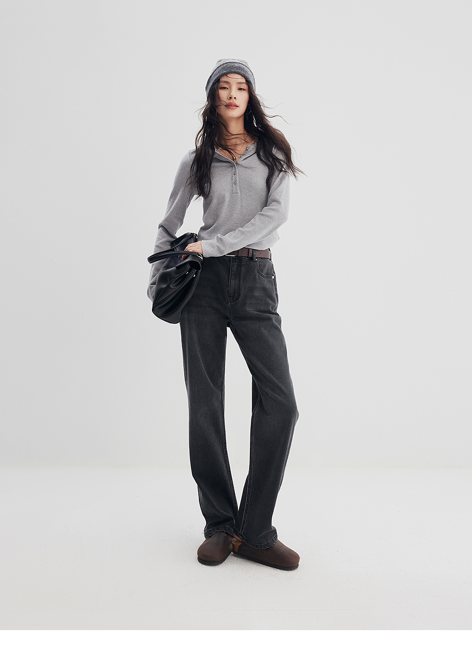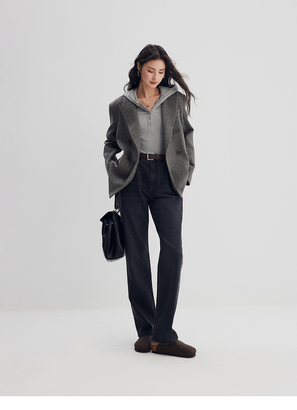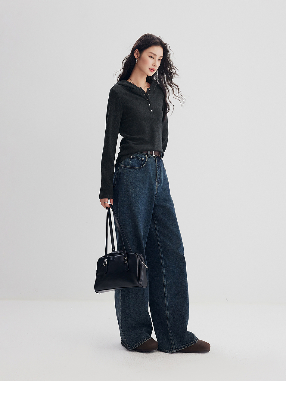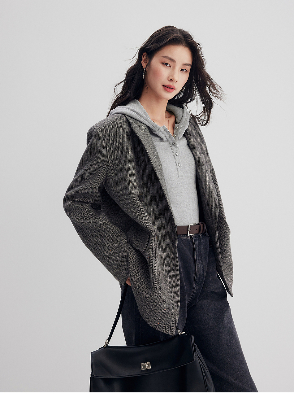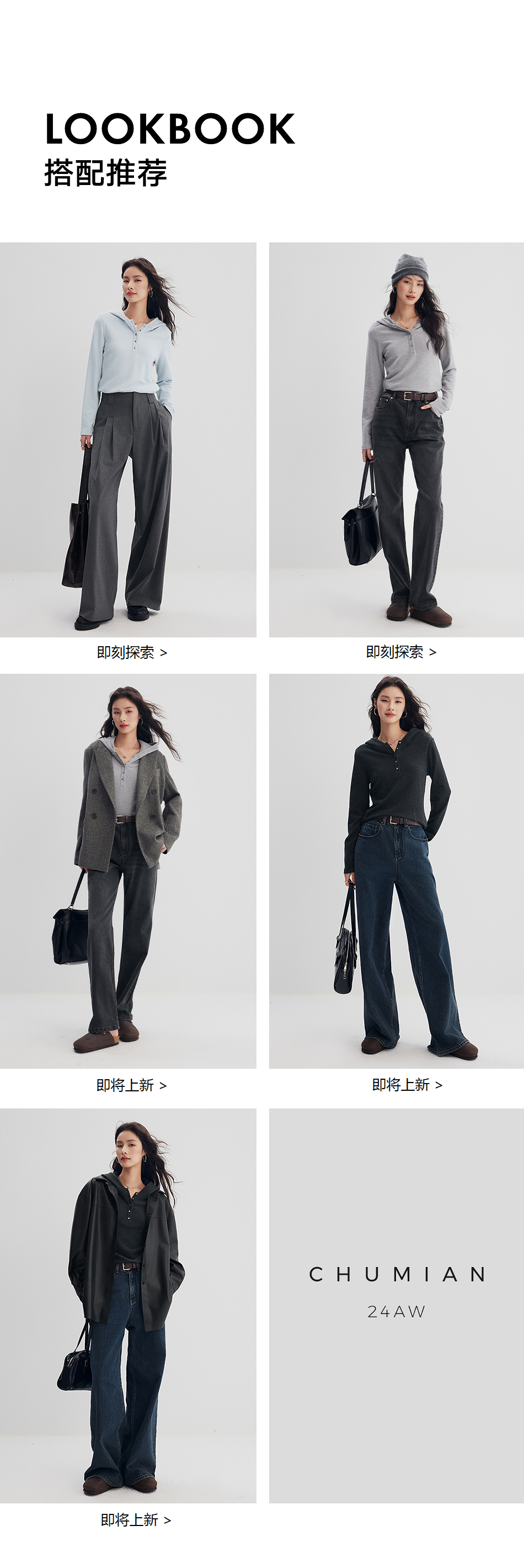 棉仓357601001-小银豆牙签纹肌理感暖感绒兜帽合体微修身长袖T