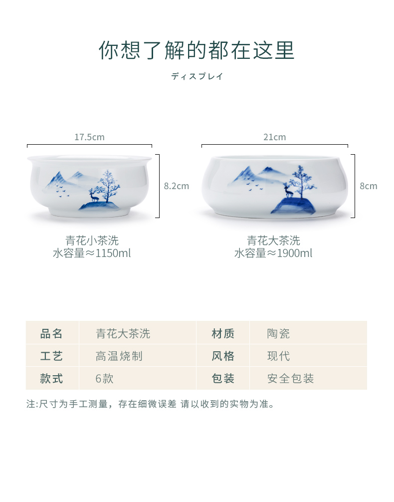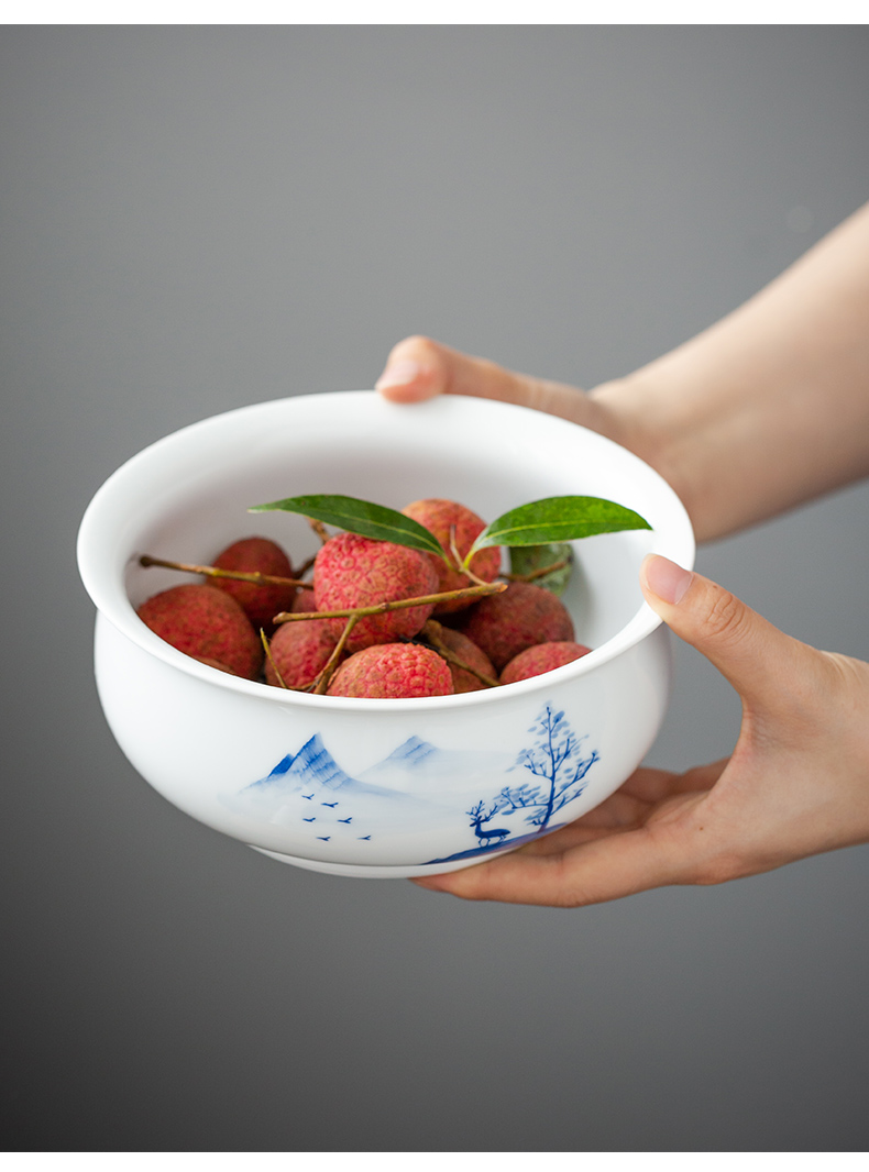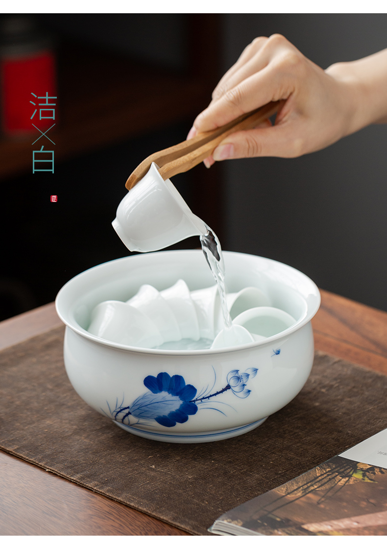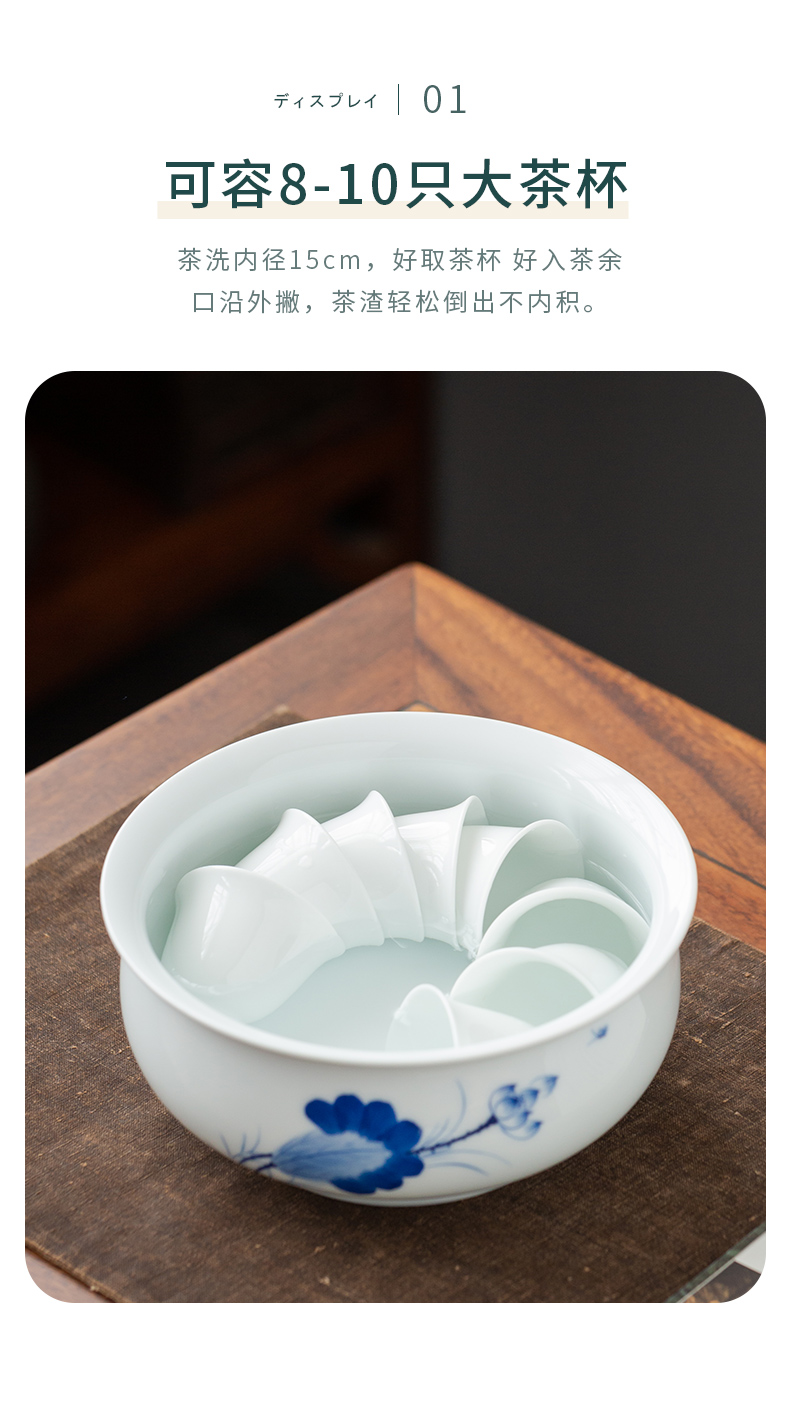 永利汇青花陶瓷茶洗家用功夫茶具杯洗笔洗水盂大号茶钵水果洗盆