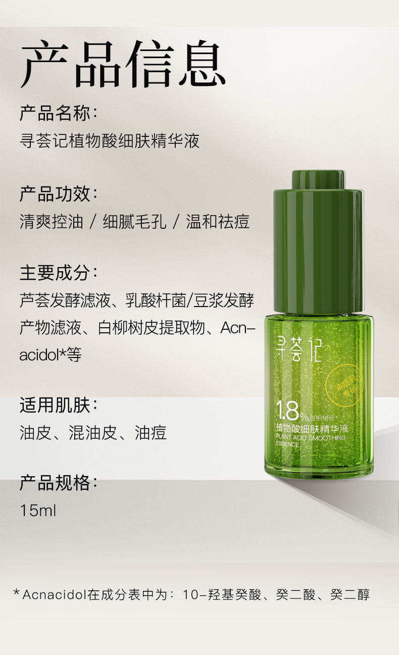 寻荟记植物酸细肤祛痘精华液舒缓修护控油维稳温和细肤