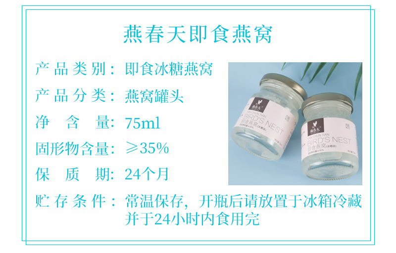 【 食品酒水】燕春天冰糖即食燕窝孕妇女老人小孩营养滋补品孕期鲜炖燕窝