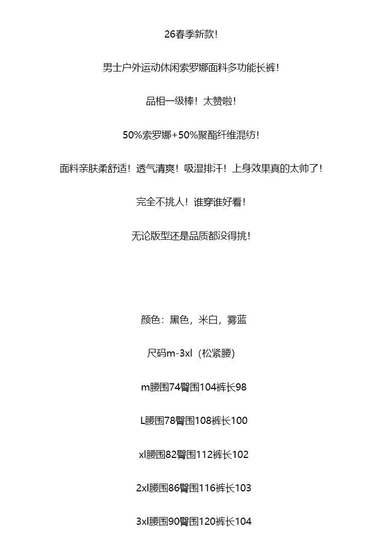 【lb1】26春新款!男士户外运动休闲功能长裤!!