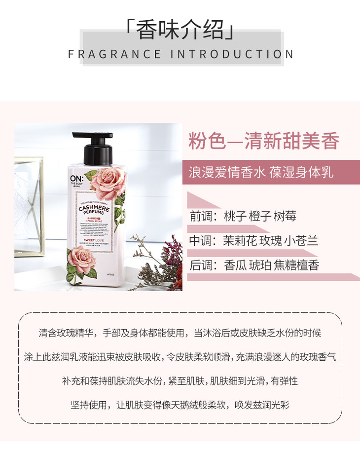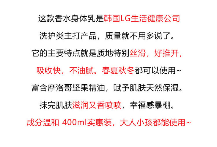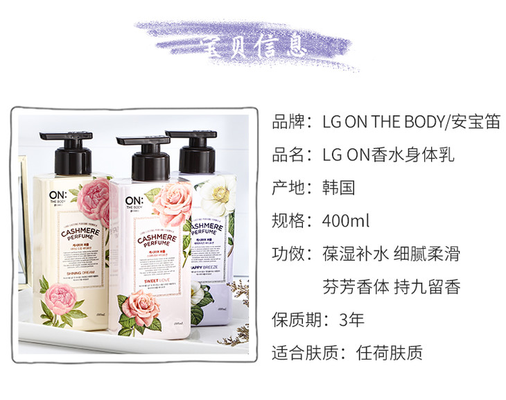 现货▲韩国LG ON香水身体乳400ml 滋润保湿持久留香花香调