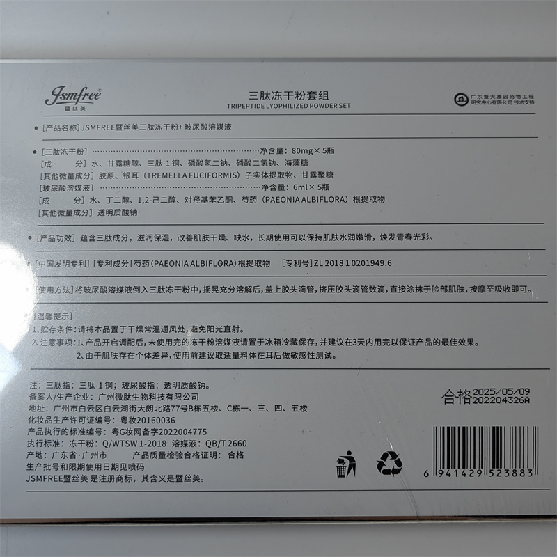 暨丝美三肽冻干粉6ml(三肽冻干粉80mg+玻尿酸溶媒液6ml*5组)
