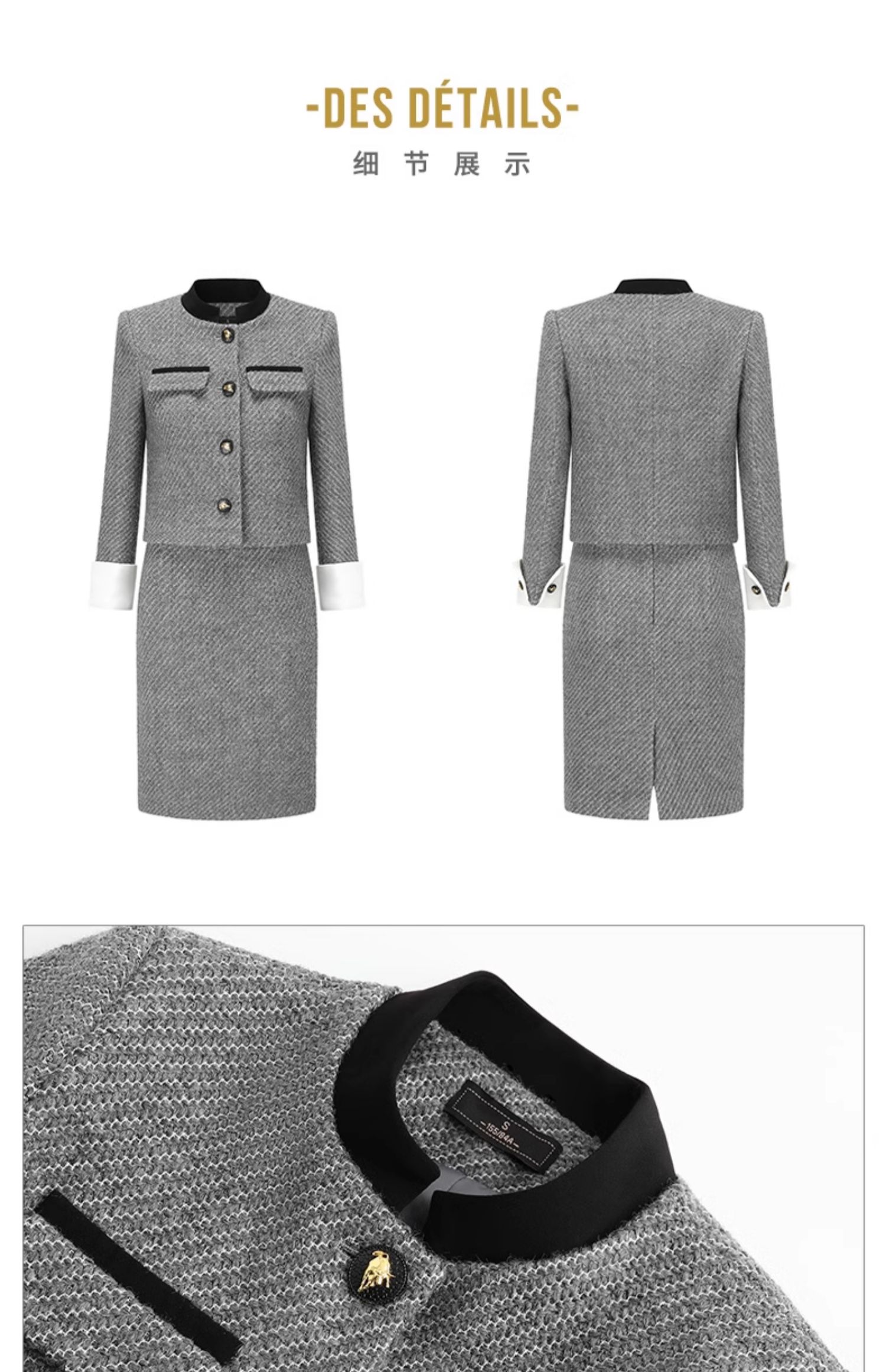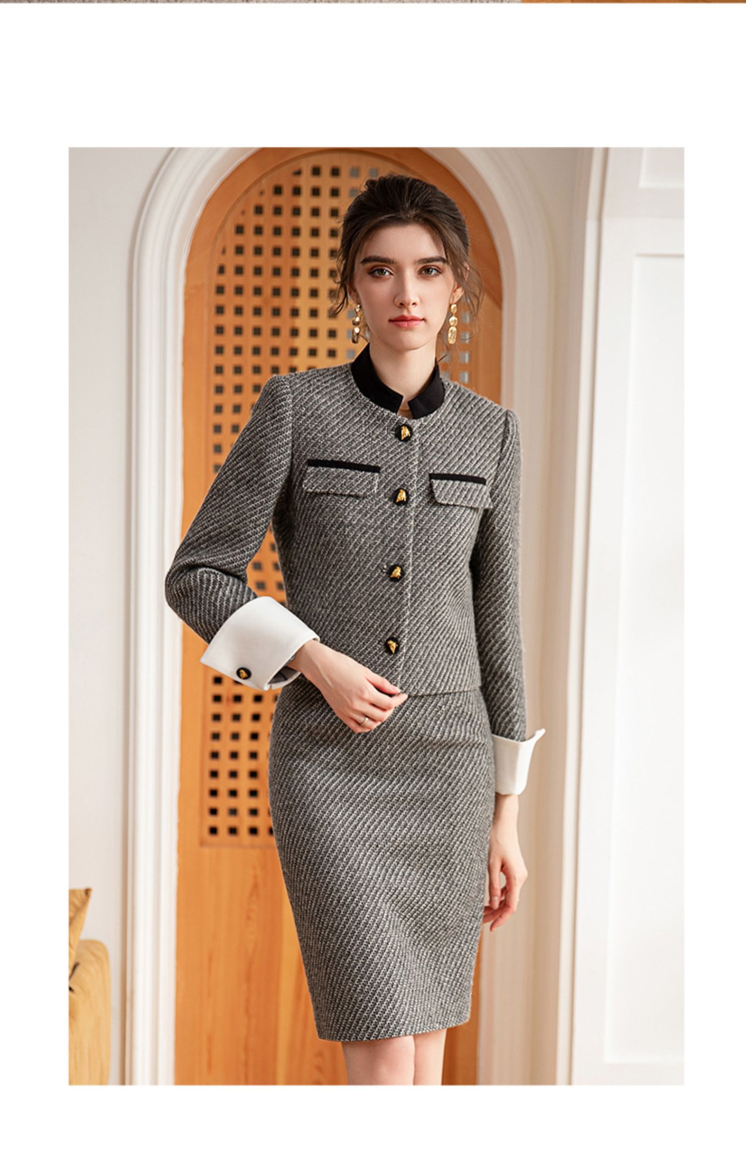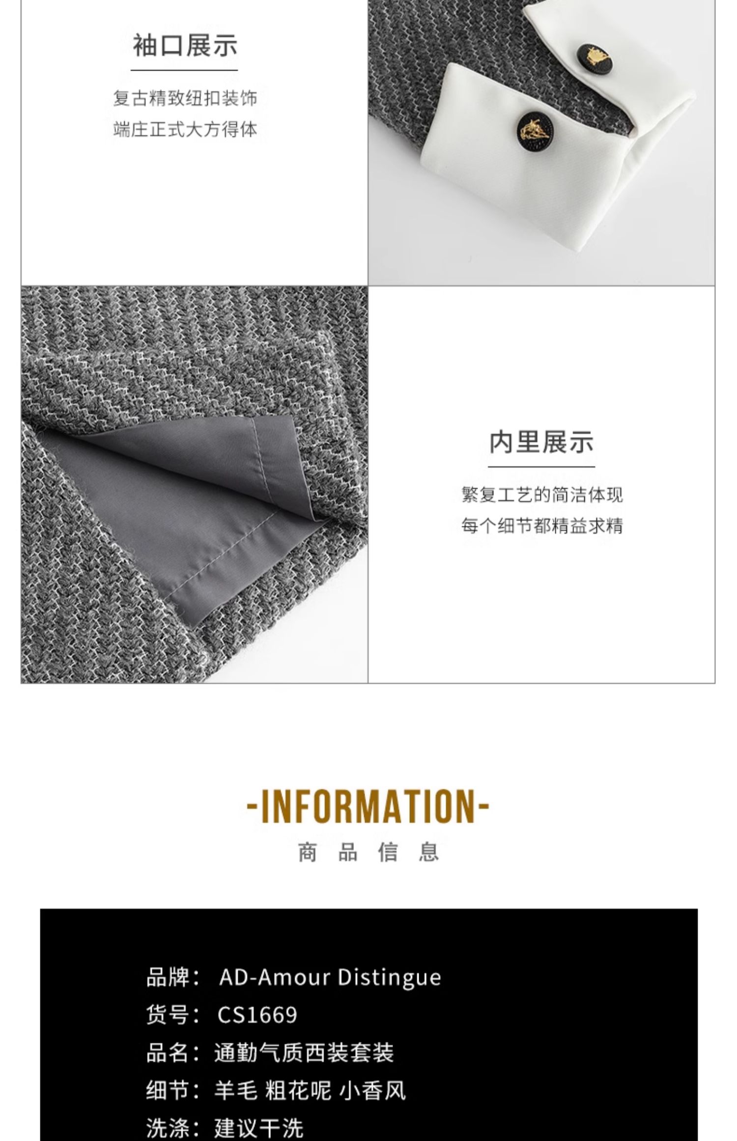 AD名媛范小香风套装裙女2022新款羊毛编织短外套格纹小西装两件套