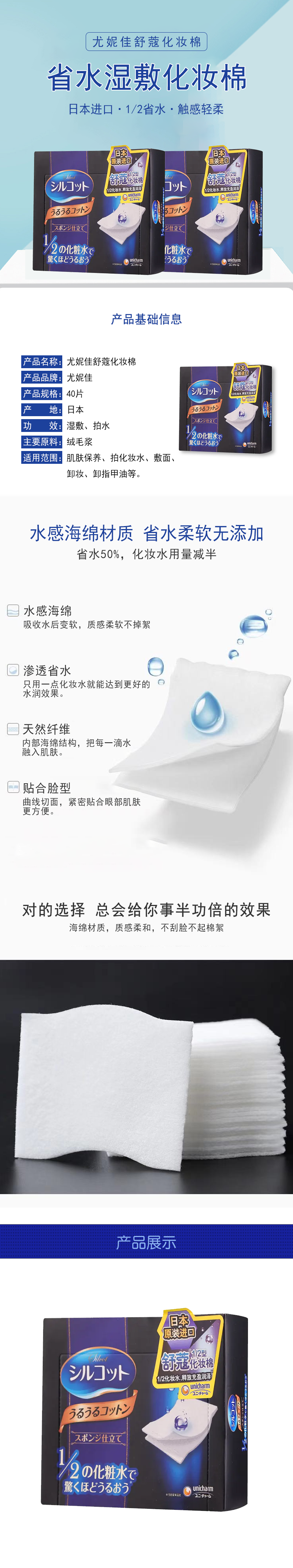 尤妮佳舒蔻化妆棉40片【30170302】