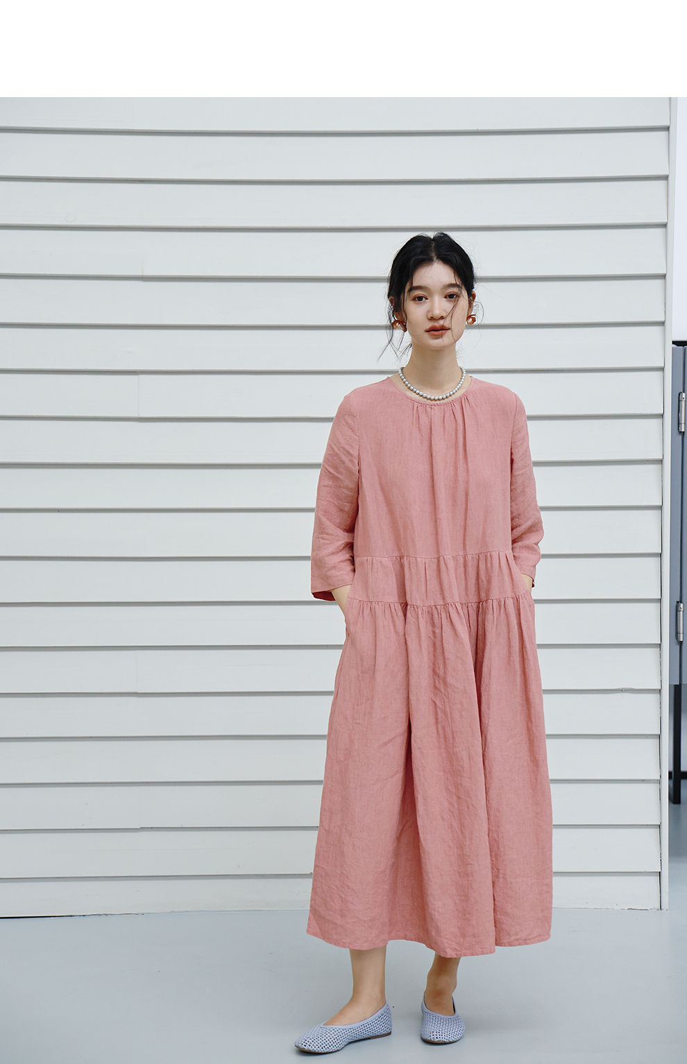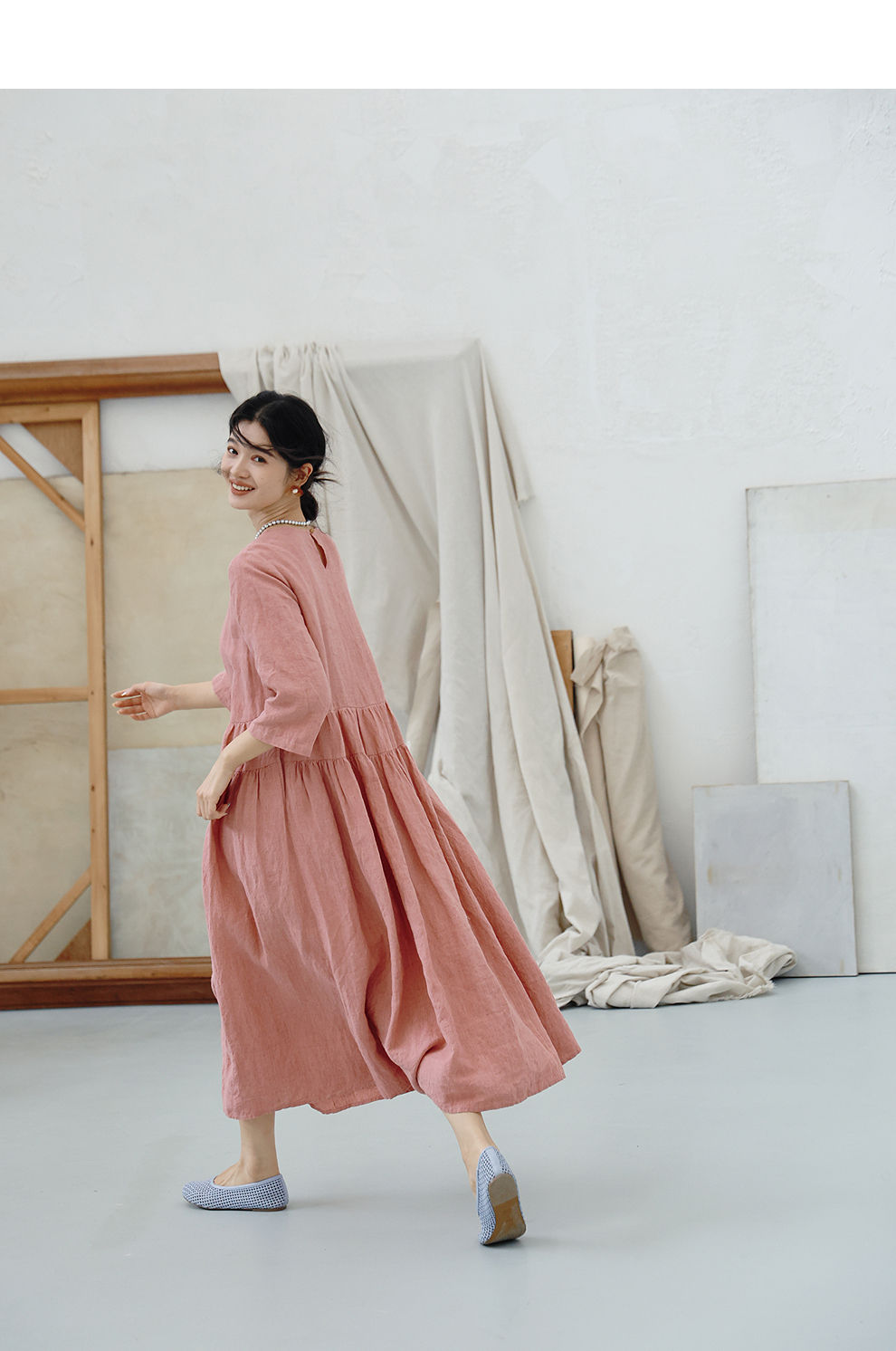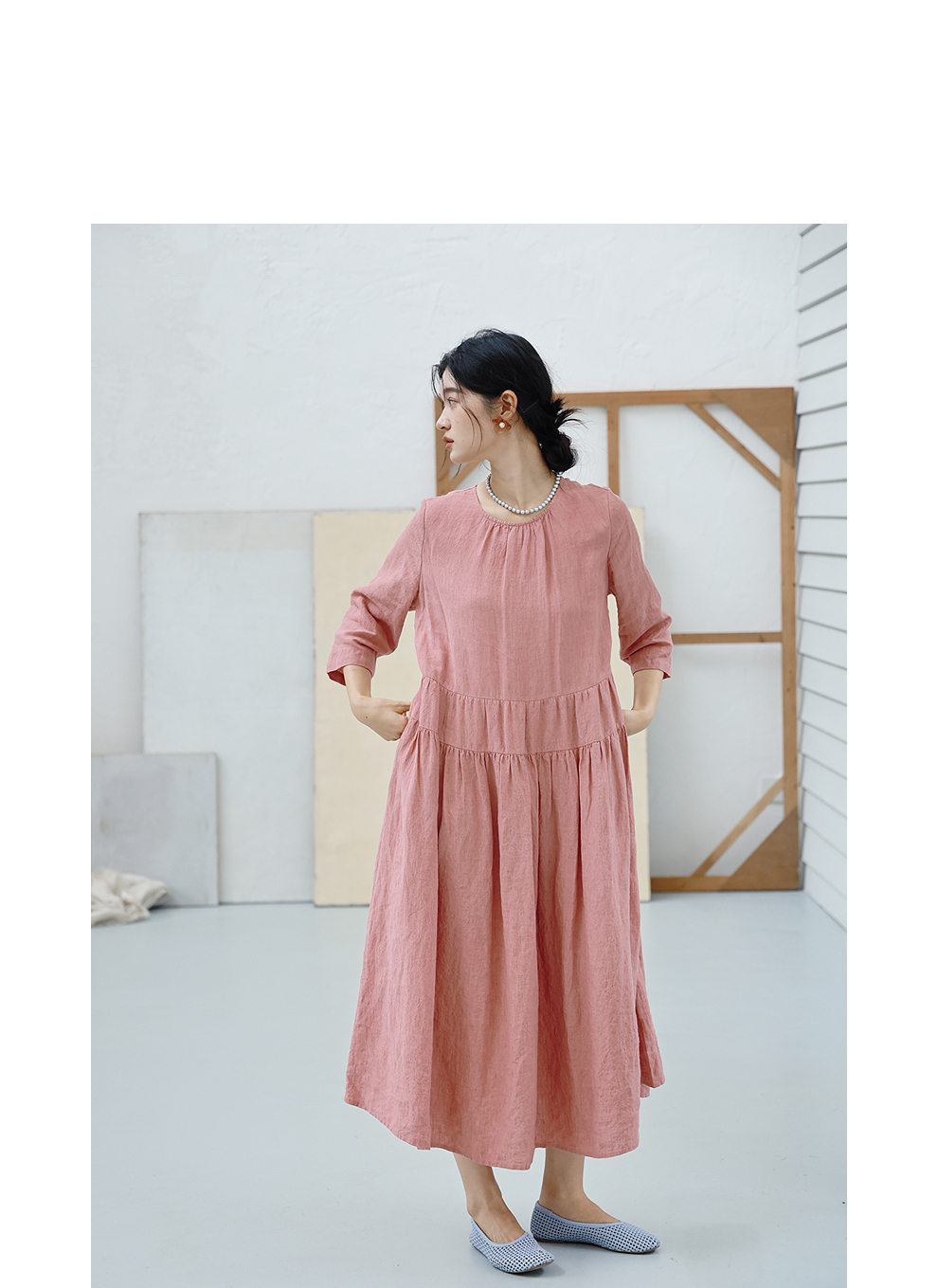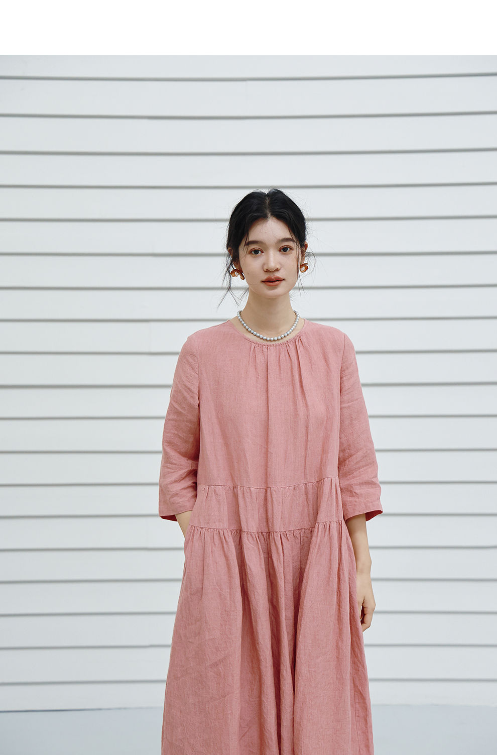 绽放417朵/【莫兰迪系列】高端酵素洗重磅色织亚麻七分袖连衣裙女