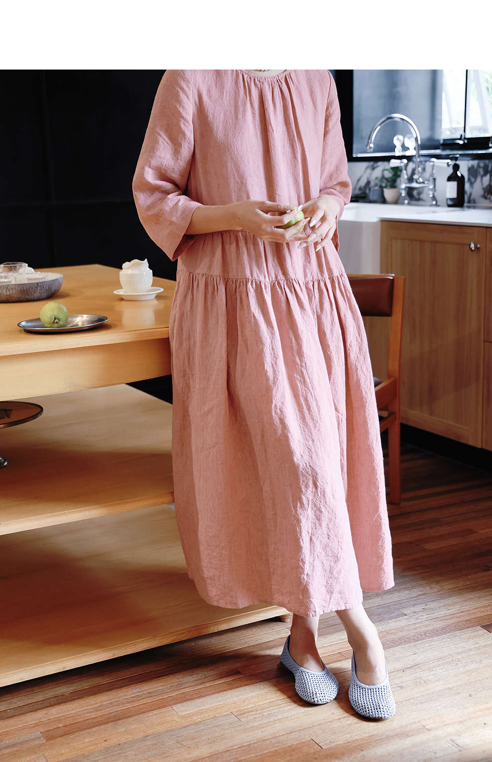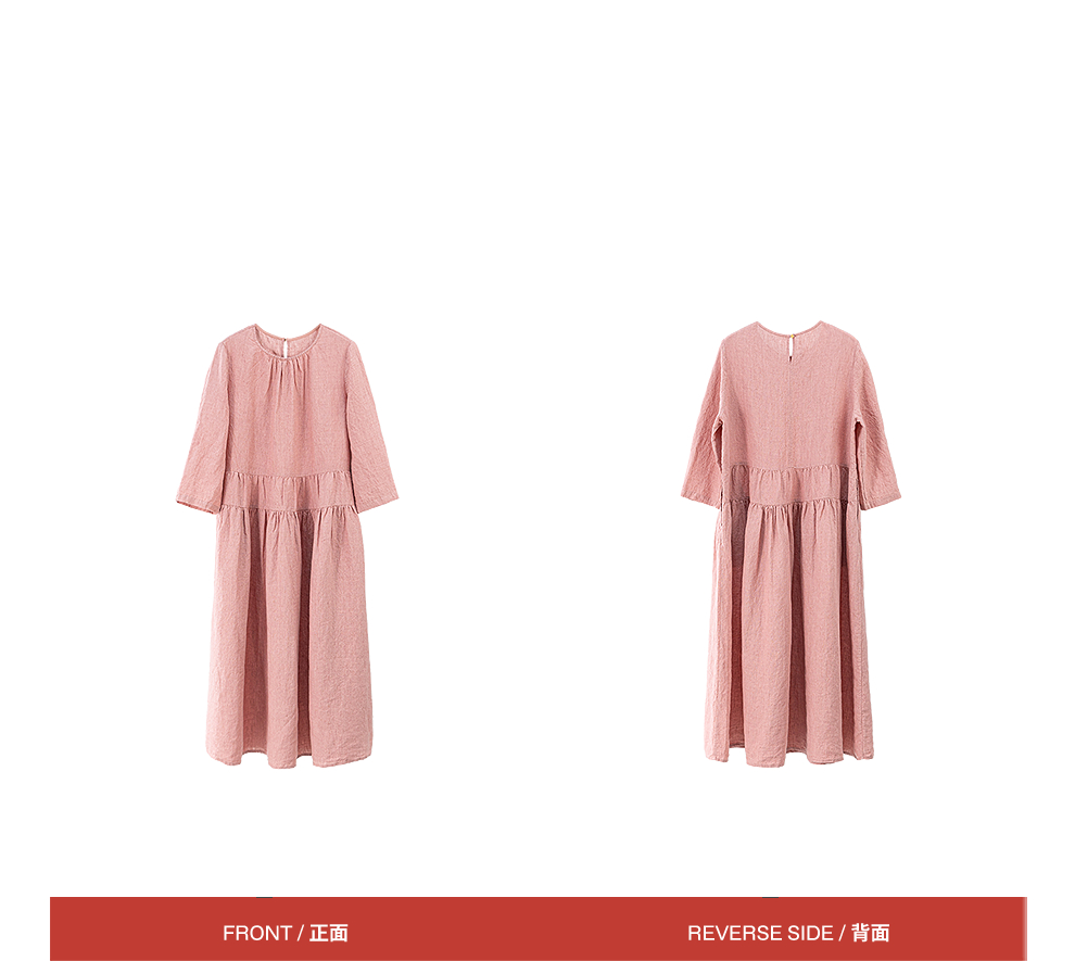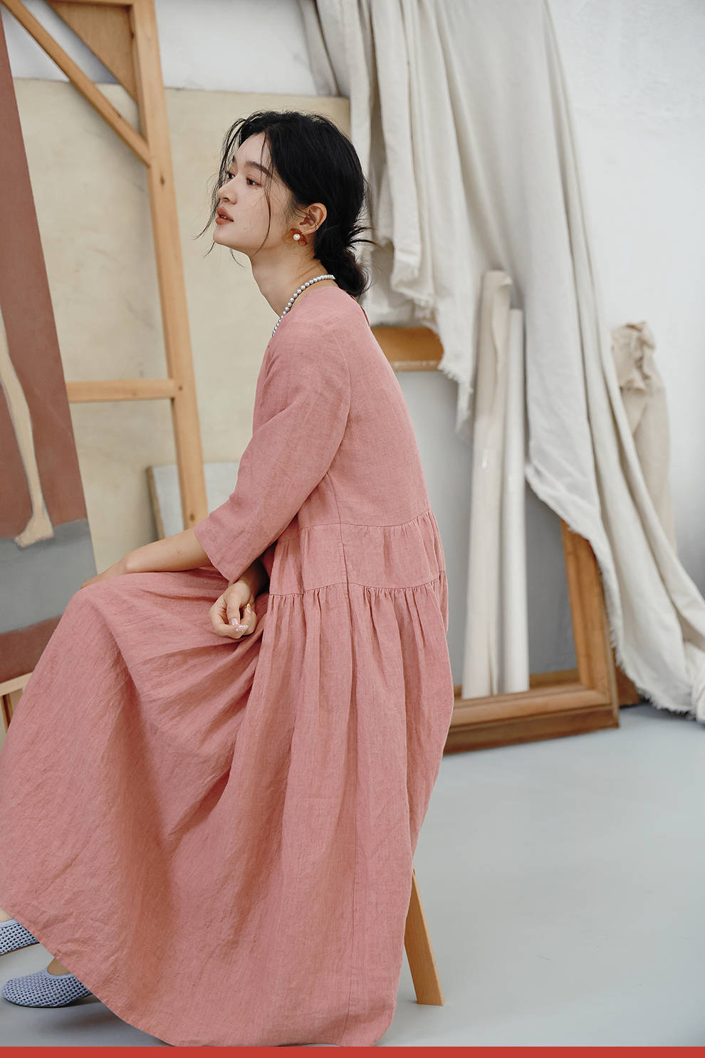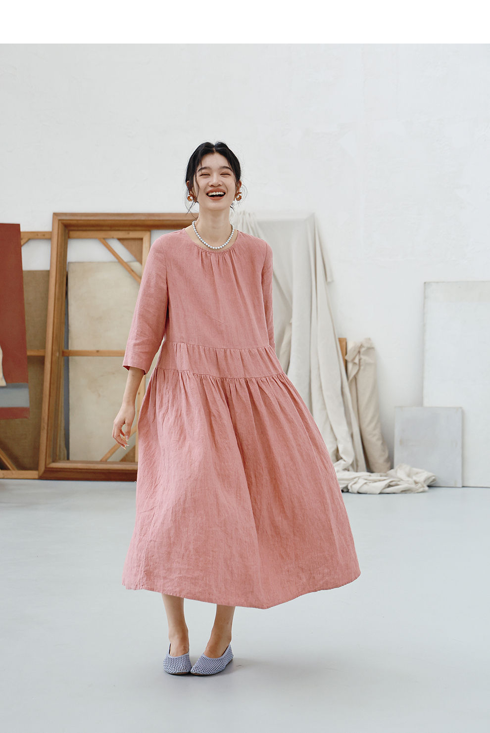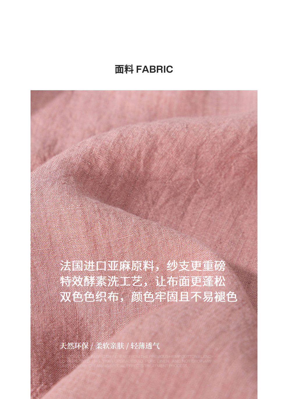 绽放417朵/【莫兰迪系列】高端酵素洗重磅色织亚麻七分袖连衣裙女
