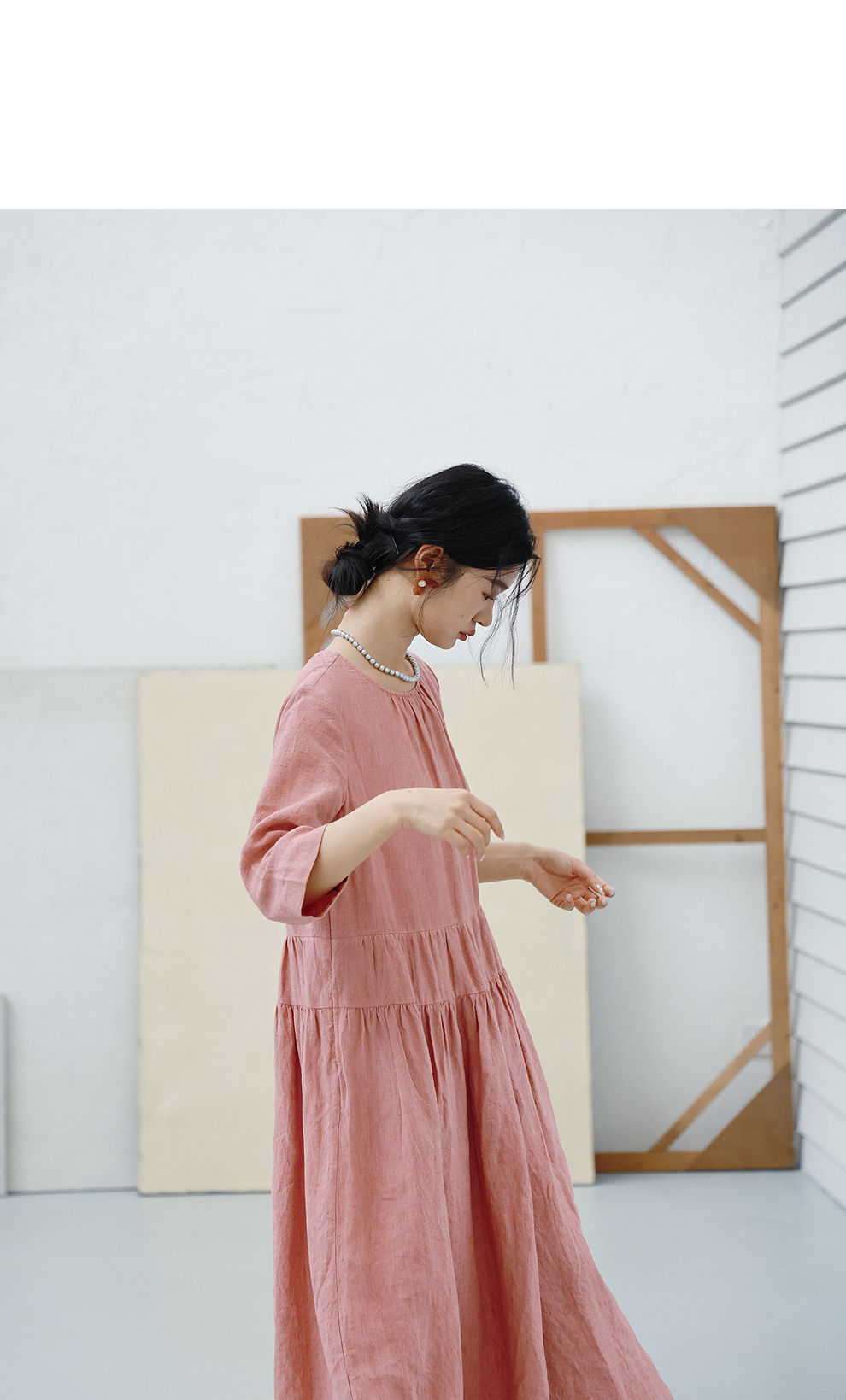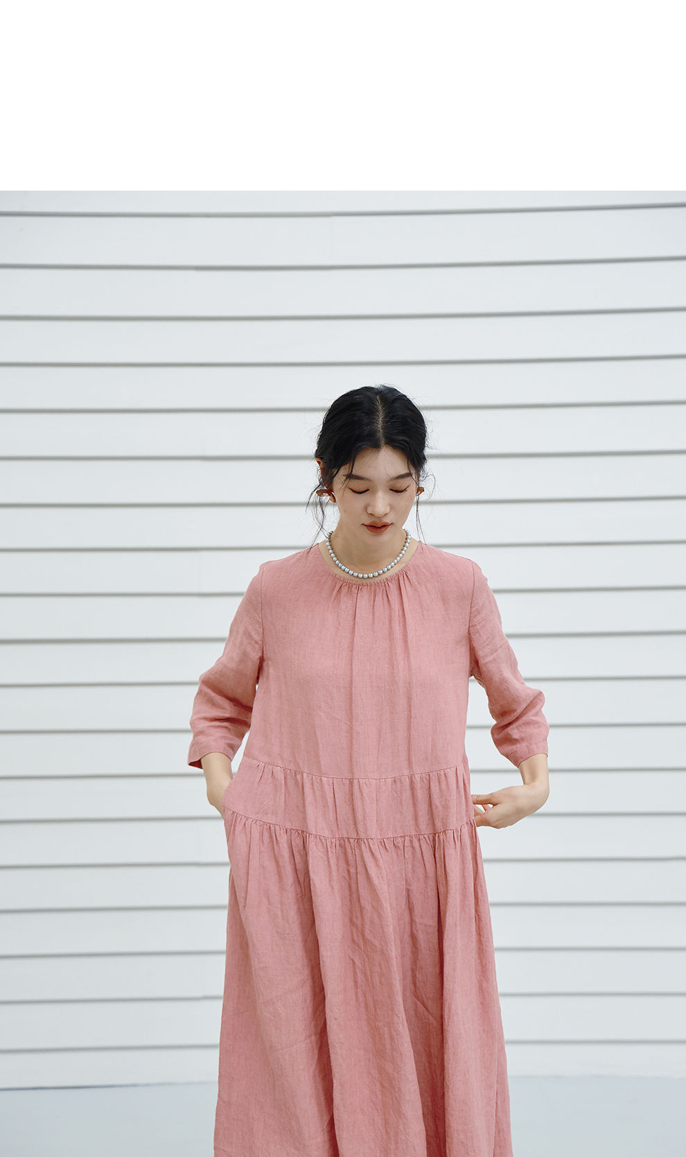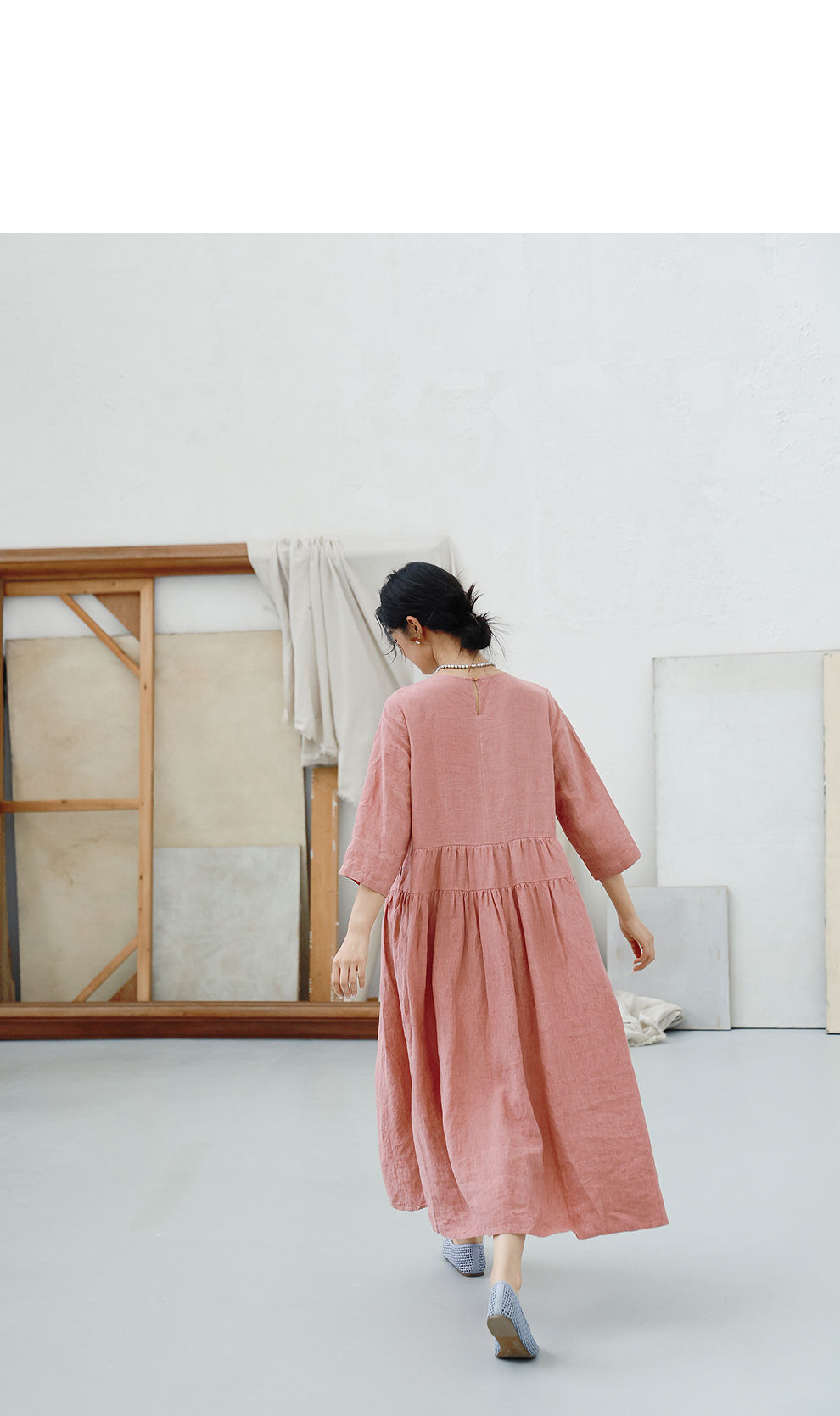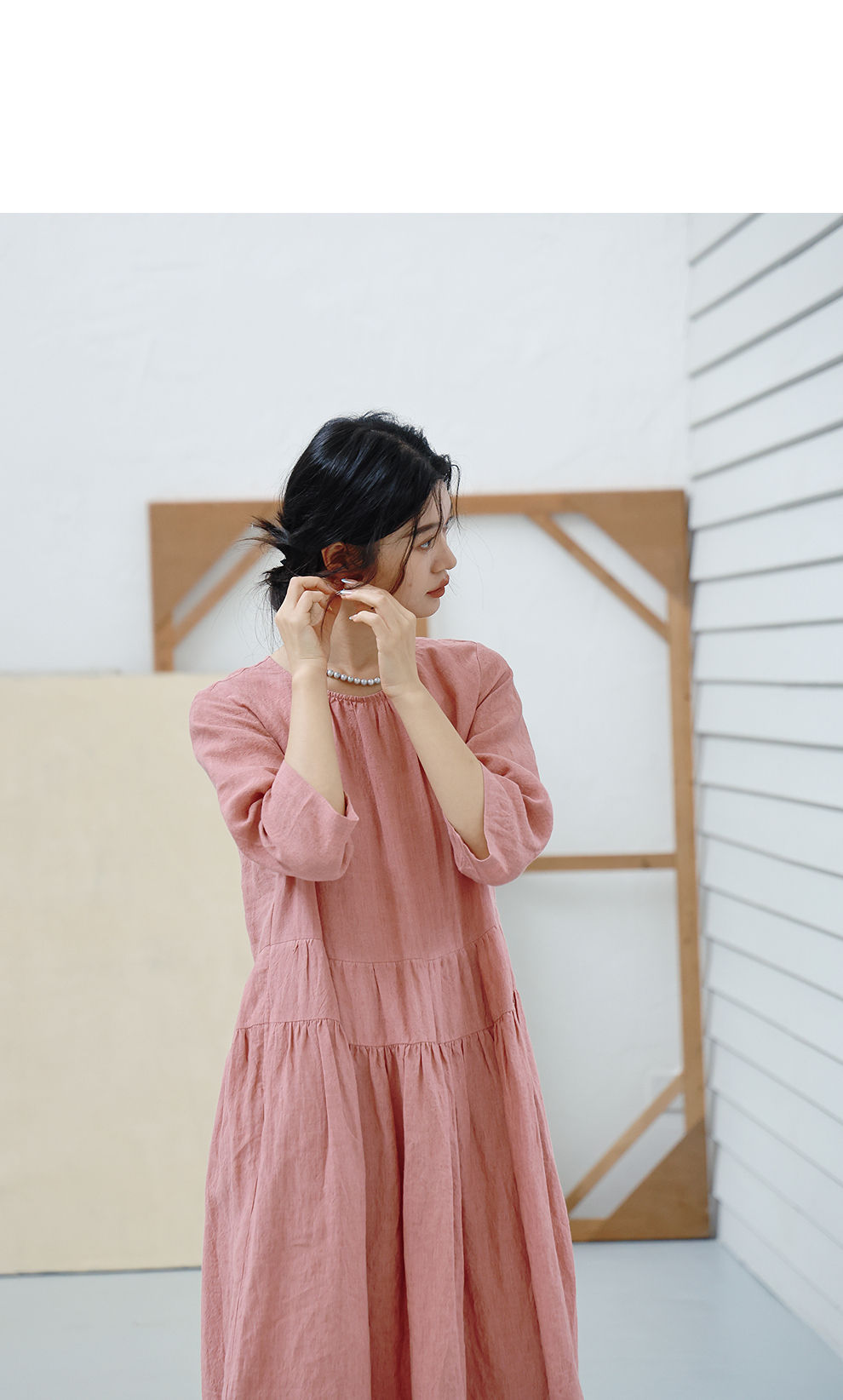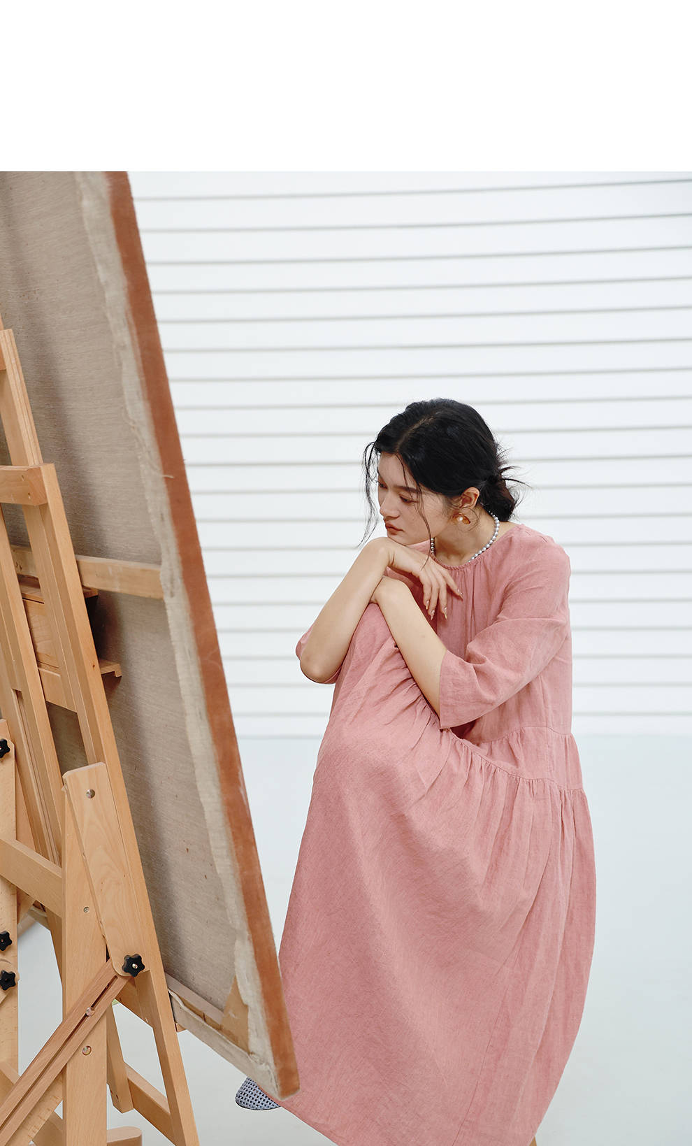绽放417朵/【莫兰迪系列】高端酵素洗重磅色织亚麻七分袖连衣裙女