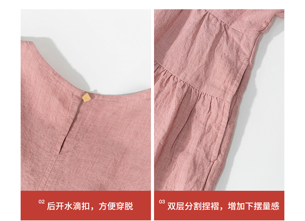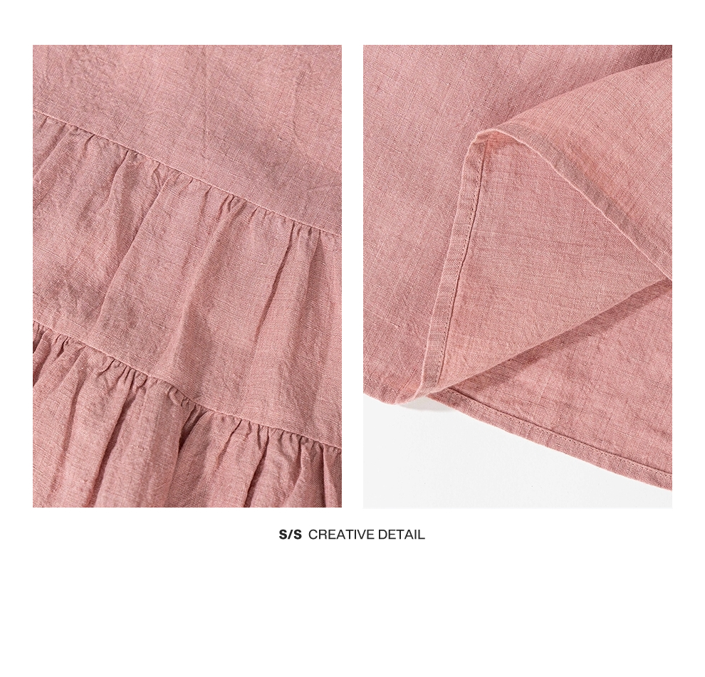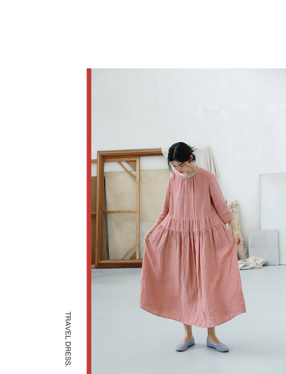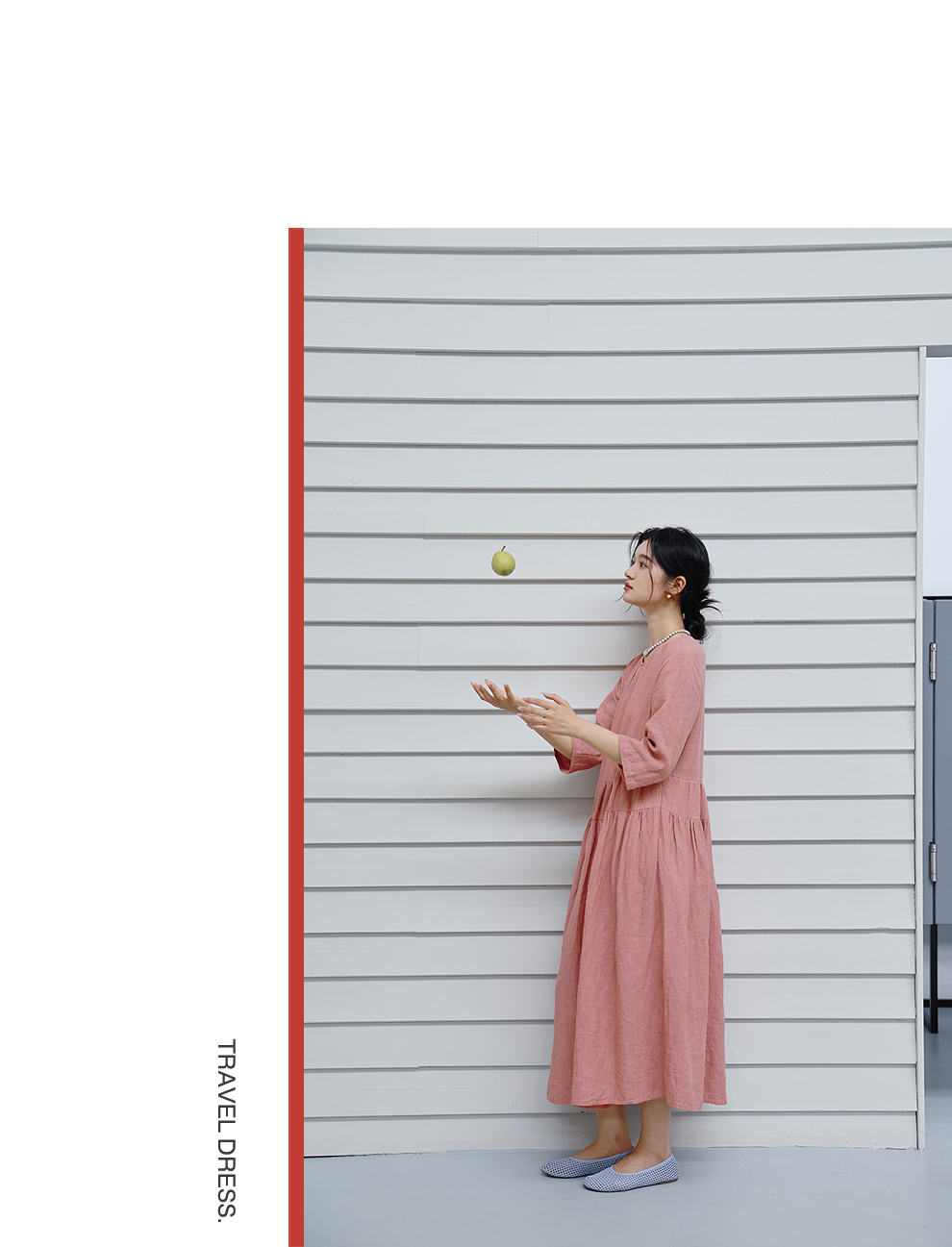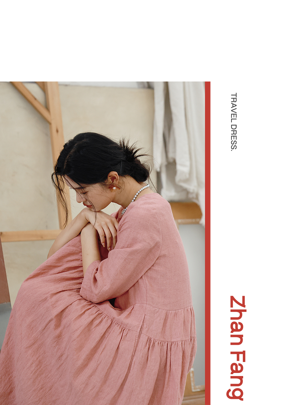 绽放417朵/【莫兰迪系列】高端酵素洗重磅色织亚麻七分袖连衣裙女
